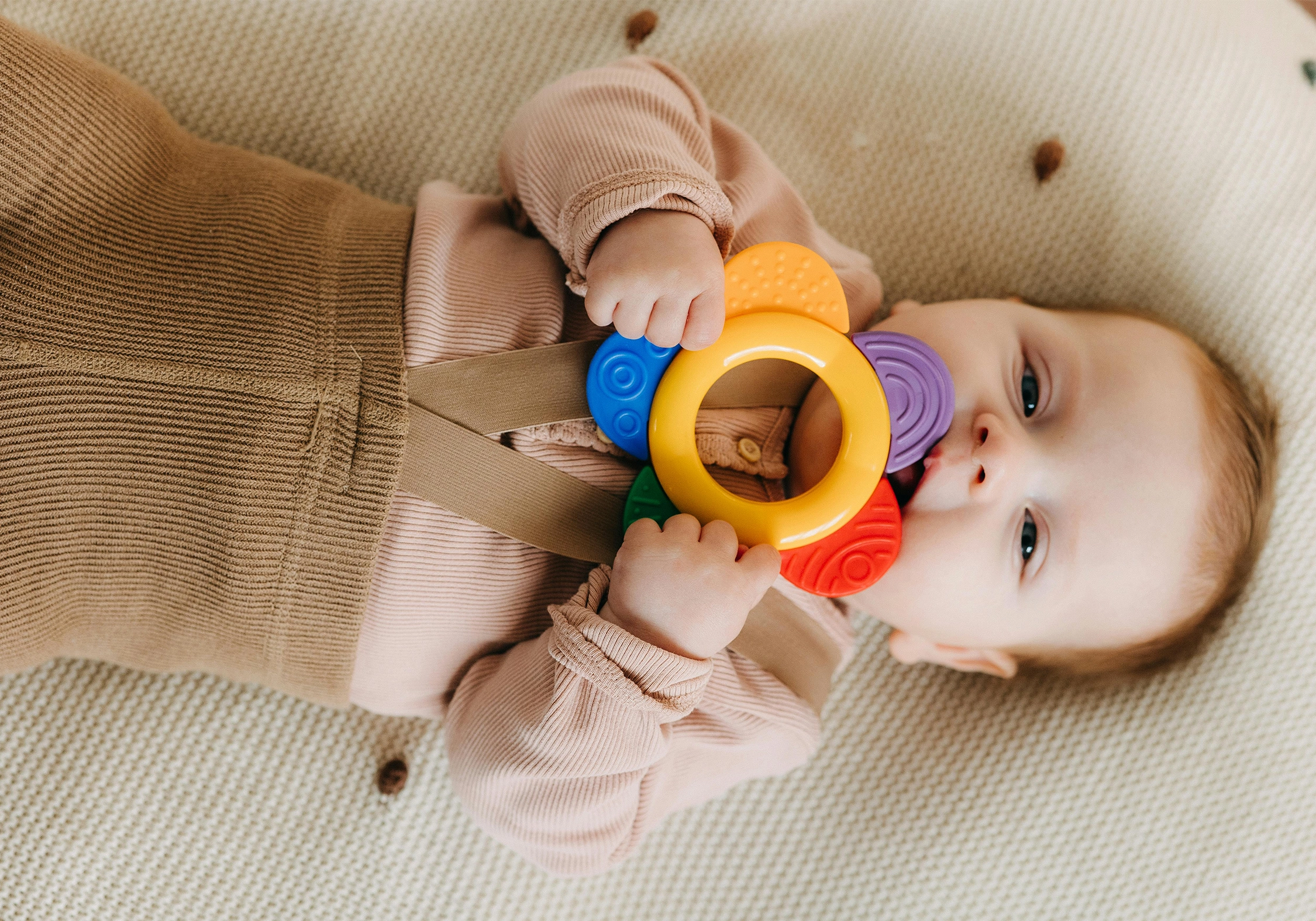 - L’utilisation d’anneaux de dentition réfrigérés, qui soulagent mécaniquement en exerçant une pression douce sur les gencives.