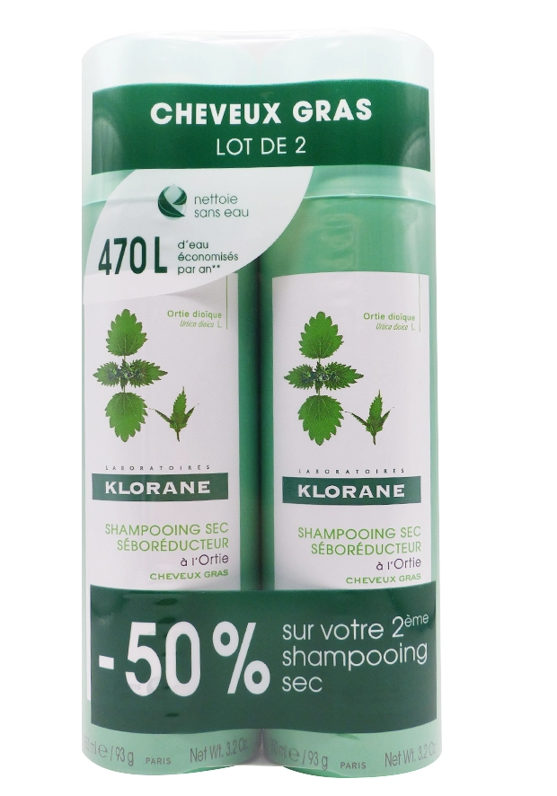 Le Shampoing Sec Klorane à l’Ortie (lot de 2 x 150 ml) est un must-have pour les cheveux...