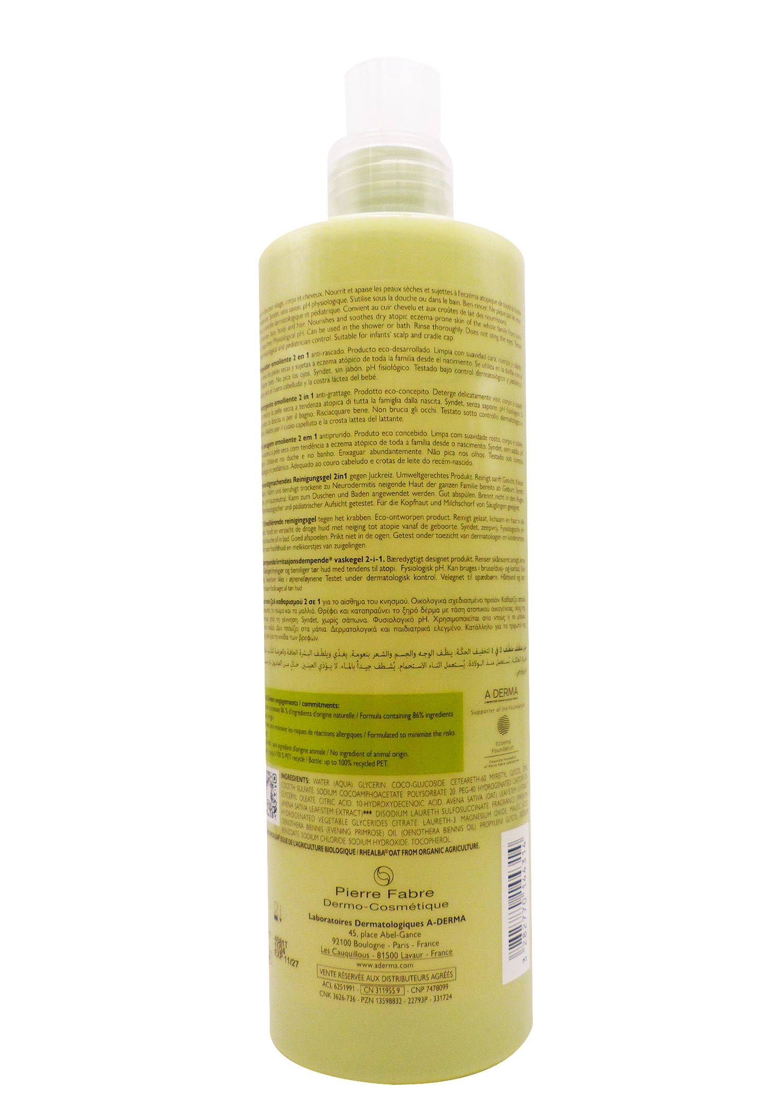 A-Derma Exomega Control 2 en 1, 500 ml contient :