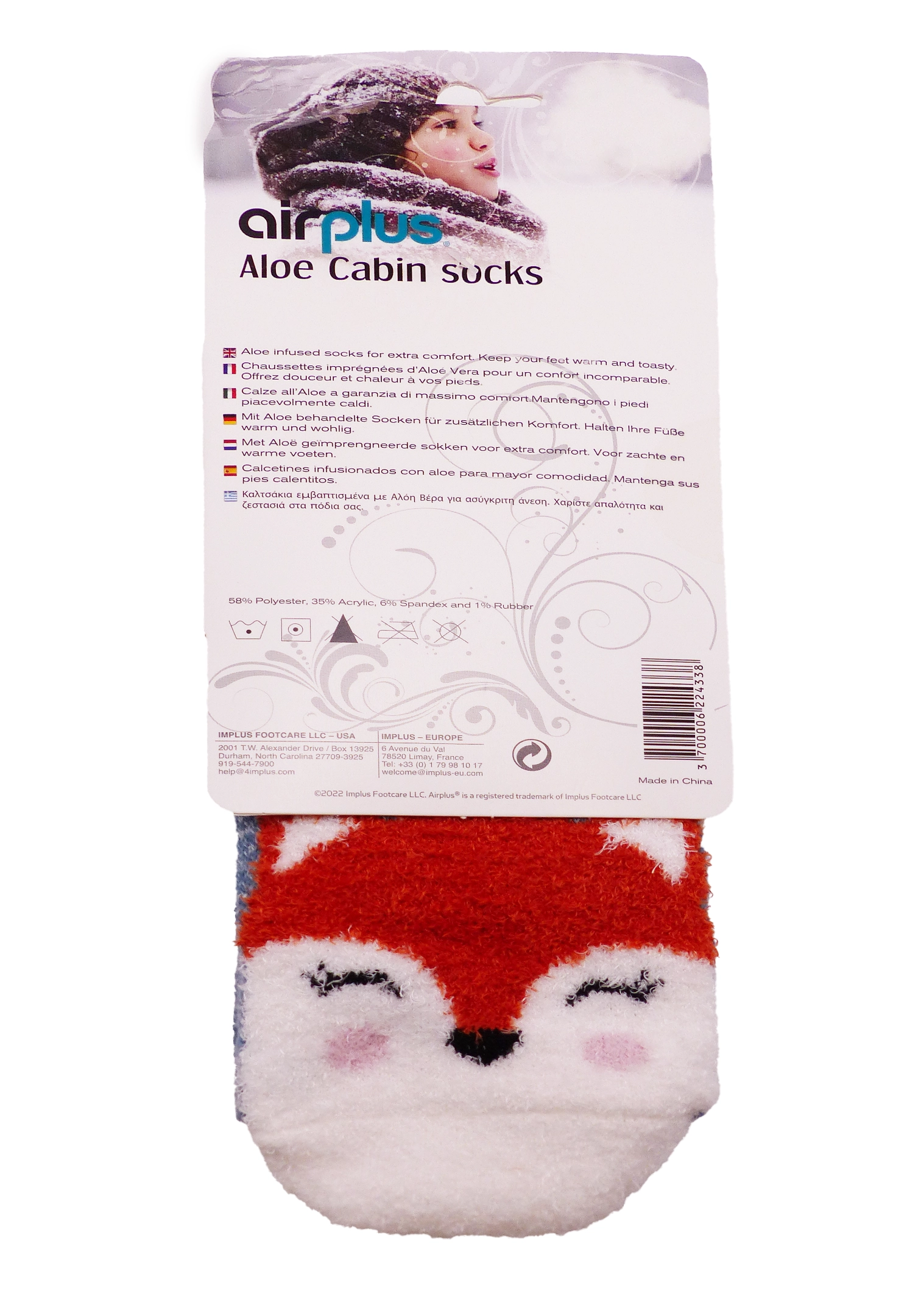 Airplus chaussettes enfant fox 28-36 sont des chaussettes hydratantes enfant type cabine, enrichies en aloe vera et vitamine E, qui réchauffent, protègent et adoucissent les pieds sensibles des enfants, en pointure 28-36. Grâce à leur format chaussettes chausson enfant, elles offrent confort, hydratation et style avec un motif renard ludique, tout en simplifiant la routine soin des pieds au quotidien.