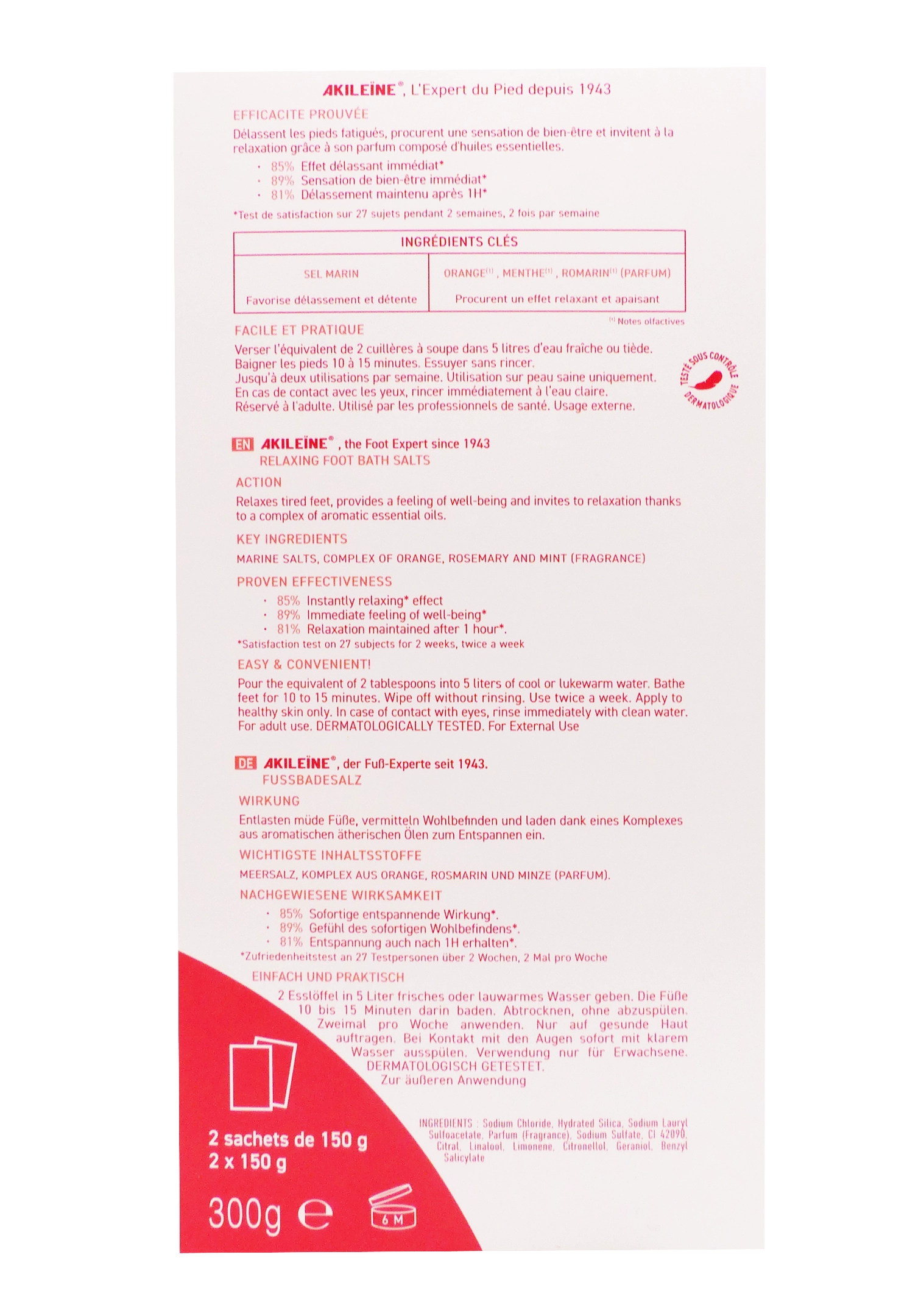 Les atouts des sels de bain délassants Akileïne 300 g :