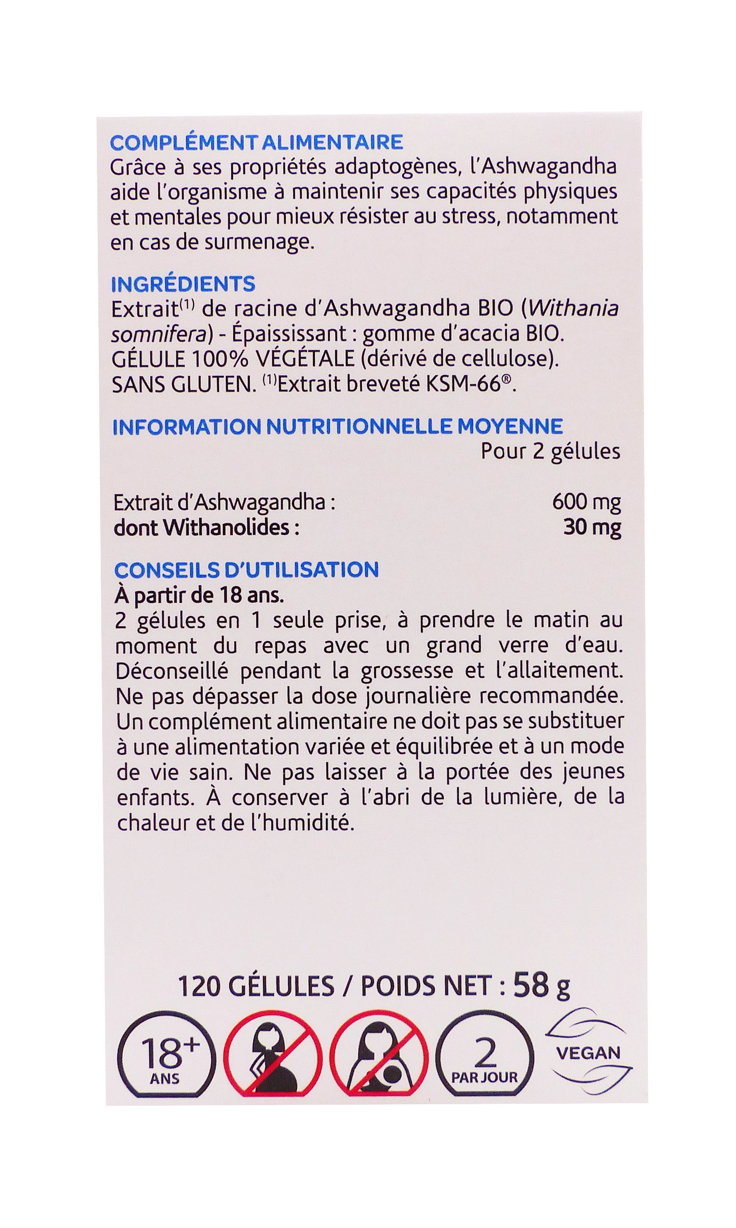 - Dosage précis : 30 mg de withanolides/jour pour une efficacité optimale sans surdosage.