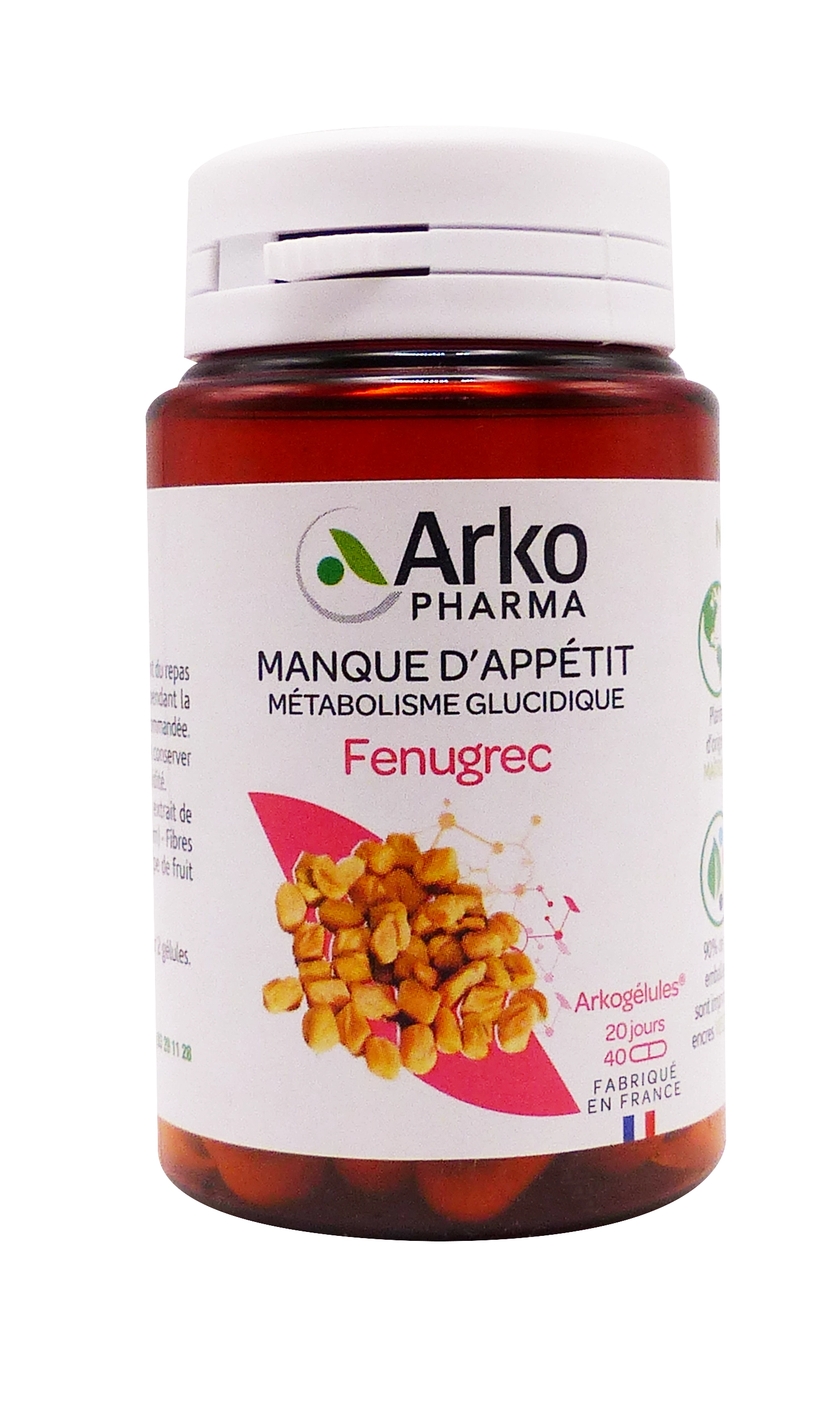 Arkogélules Fenugrec d’Arkopharma 40 gélules offre une approche naturelle et concentrée pour relancer l’appétit et équilibrer le métabolisme, avec une formule simplifiée en une prise quotidienne.