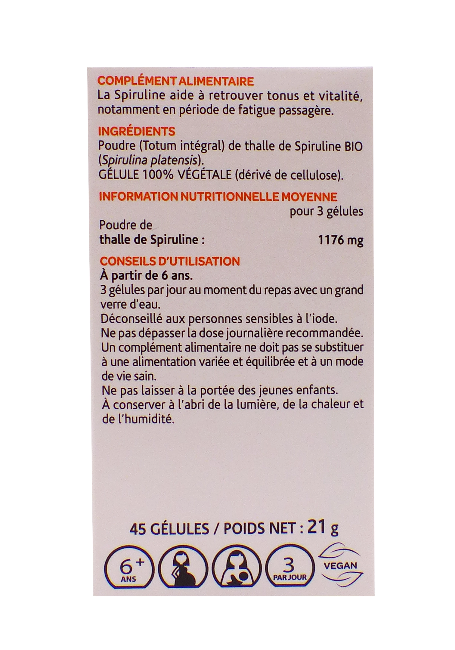 Les atouts du produit de la Spiruline 45 gélules d’Arkopharma