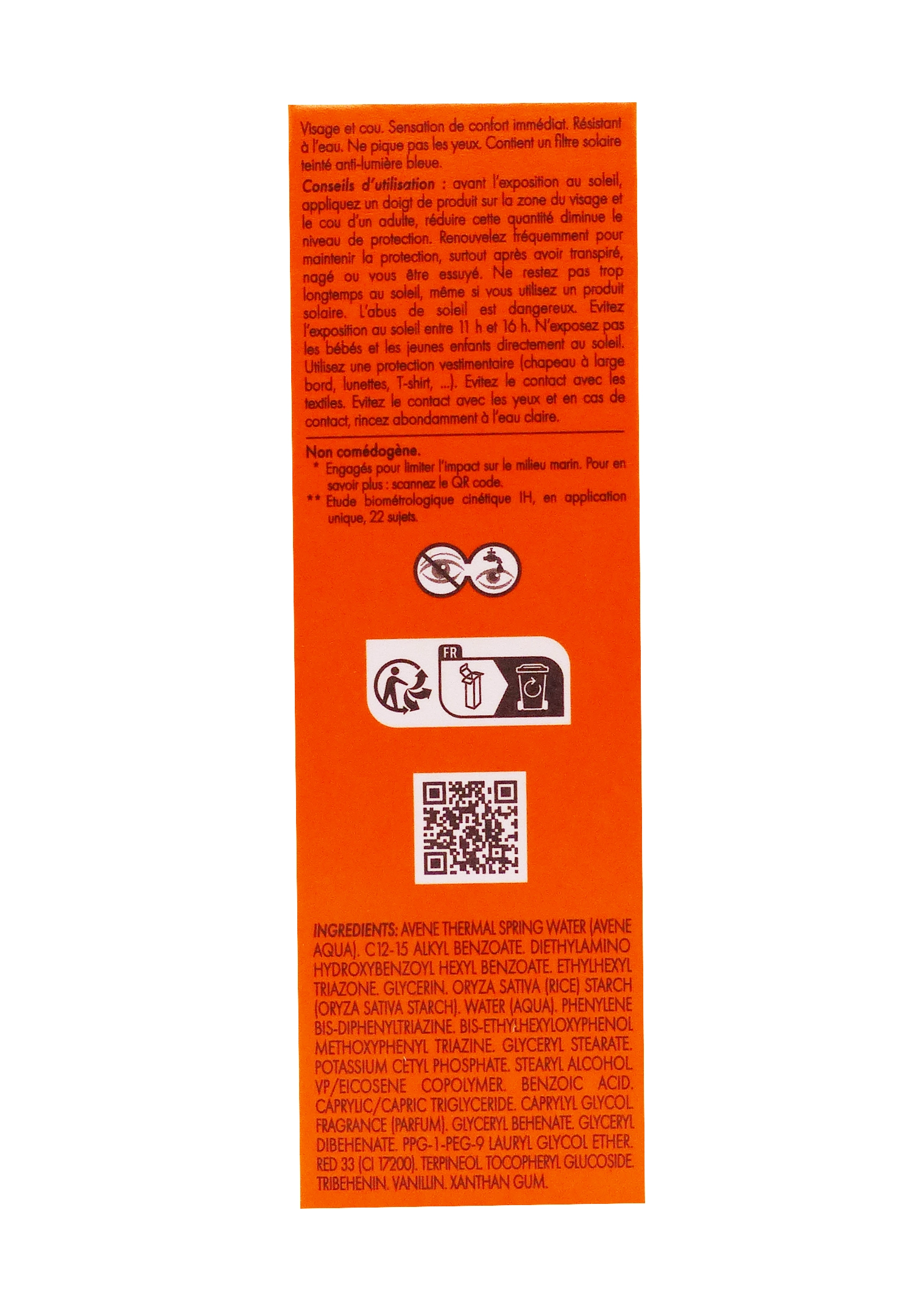 Composition d’Avène Crème SPF 50+ Fini invisible 50 ml :