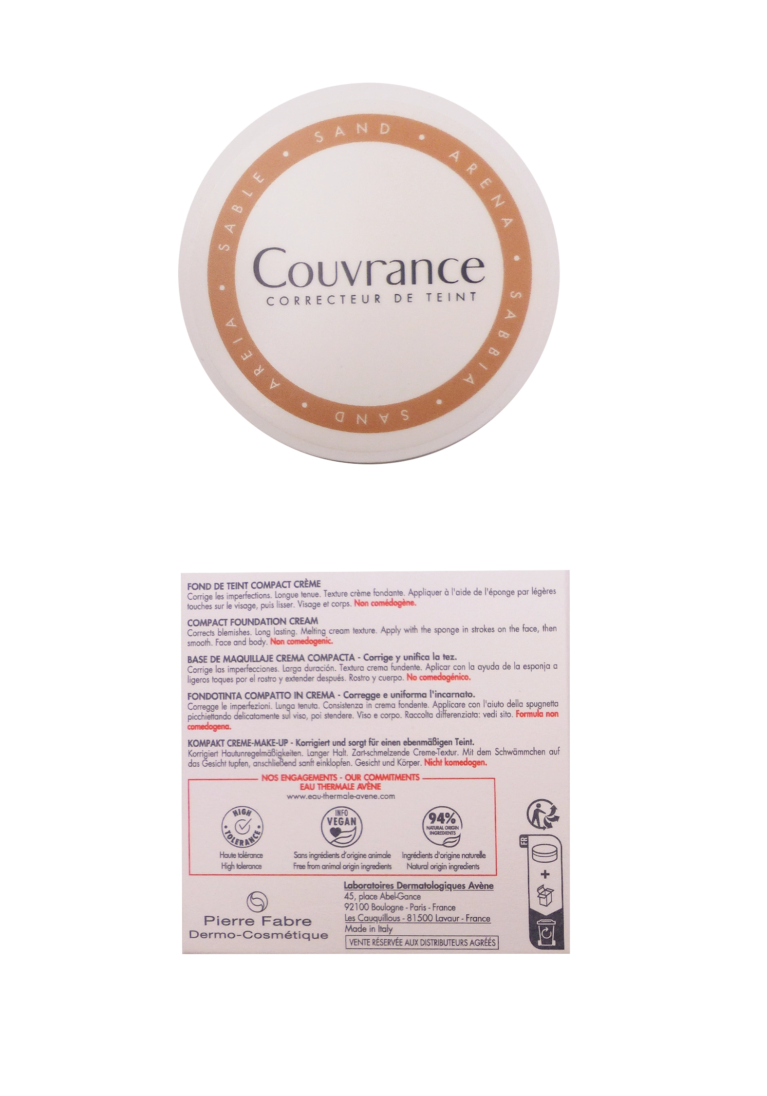Avène Couvrance Fond de Teint Compact Crème SPF 30 Teinte Sable 1.2 est un fond de teint compact haute couvrance spécialement conçu pour les peaux sensibles et à imperfections. Formulé par le Laboratoire Dermatologique Avène, ce soin maquillage allie correction intense, unification du teint et protection solaire pour un résultat naturel, mat et durable. La teinte Sable 1.2 est idéale pour les carnations mates à dorées, offrant une couverture modulable et un fini mat.