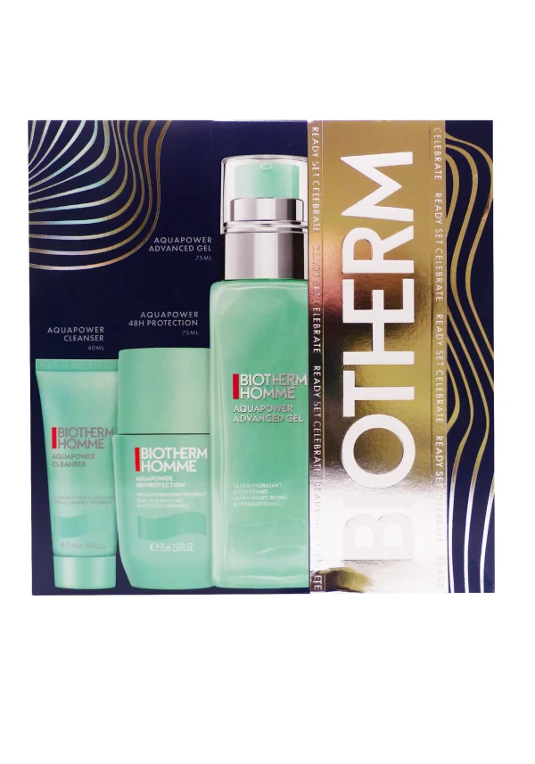 Le nettoyant Aquapower Cleanser élimine efficacement impuretés et excès de sébum, sans dessécher la peau. Il prépare l’épiderme à recevoir le gel hydratant Aquapower, star des soins hydratants homme, dont la texture non-grasse pénètre instantanément et procure une sensation immédiate de fraîcheur. Enfin, le déodorant anti-transpirant homme Biotherm agit pendant 48 heures pour offrir une protection fiable contre l’humidité et les odeurs, tout en respectant la peau.