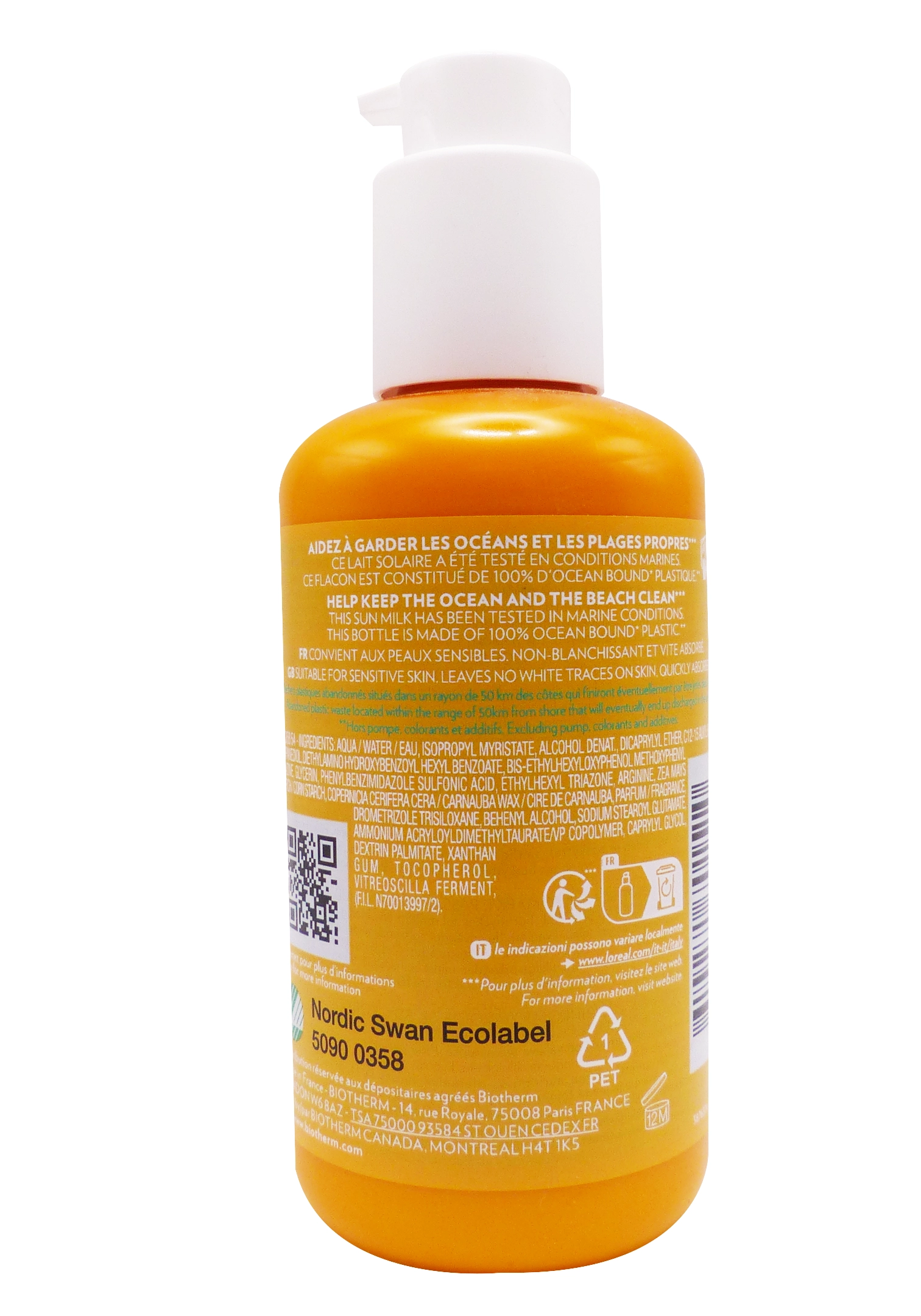 Composition du lait solaire SPF 50+, 200ml Biotherm :