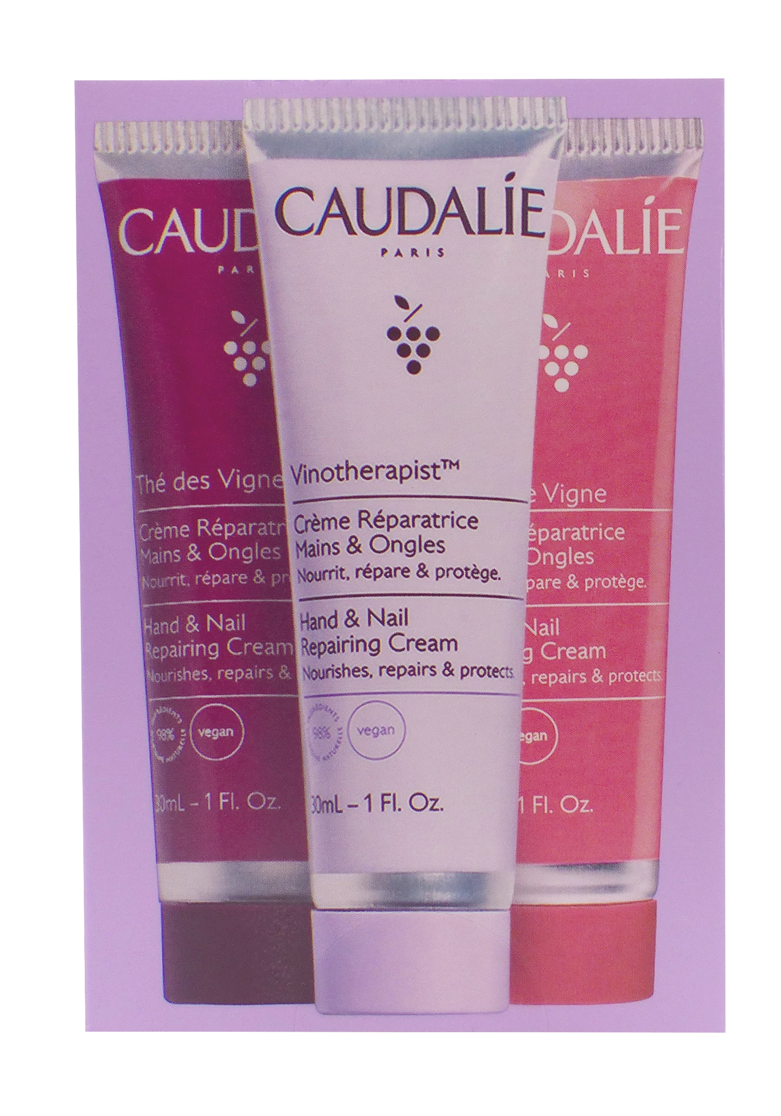 • Crème Mains et Ongles (Collection Signature) : selon les éditions, ce parfum varie (Rose des Vignes, Eau des Vignes, Fleur de Vigne…), mais conserve la base naturelle Caudalie et le toucher soyeux caractéristique des formules maison.