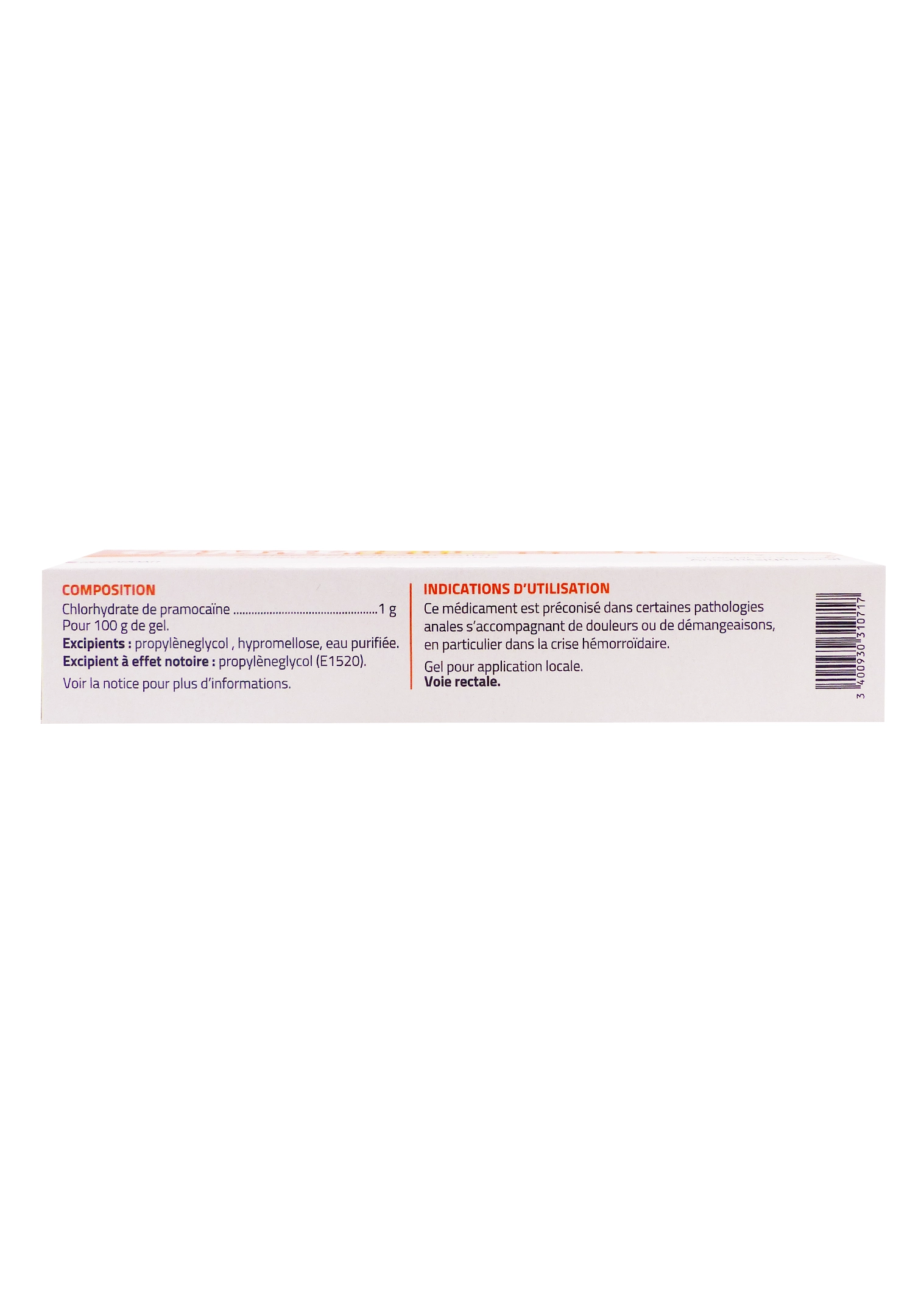Substance active : chlorhydrate de pramocaïne 1 g pour 100 g de gel (soit 1%).
