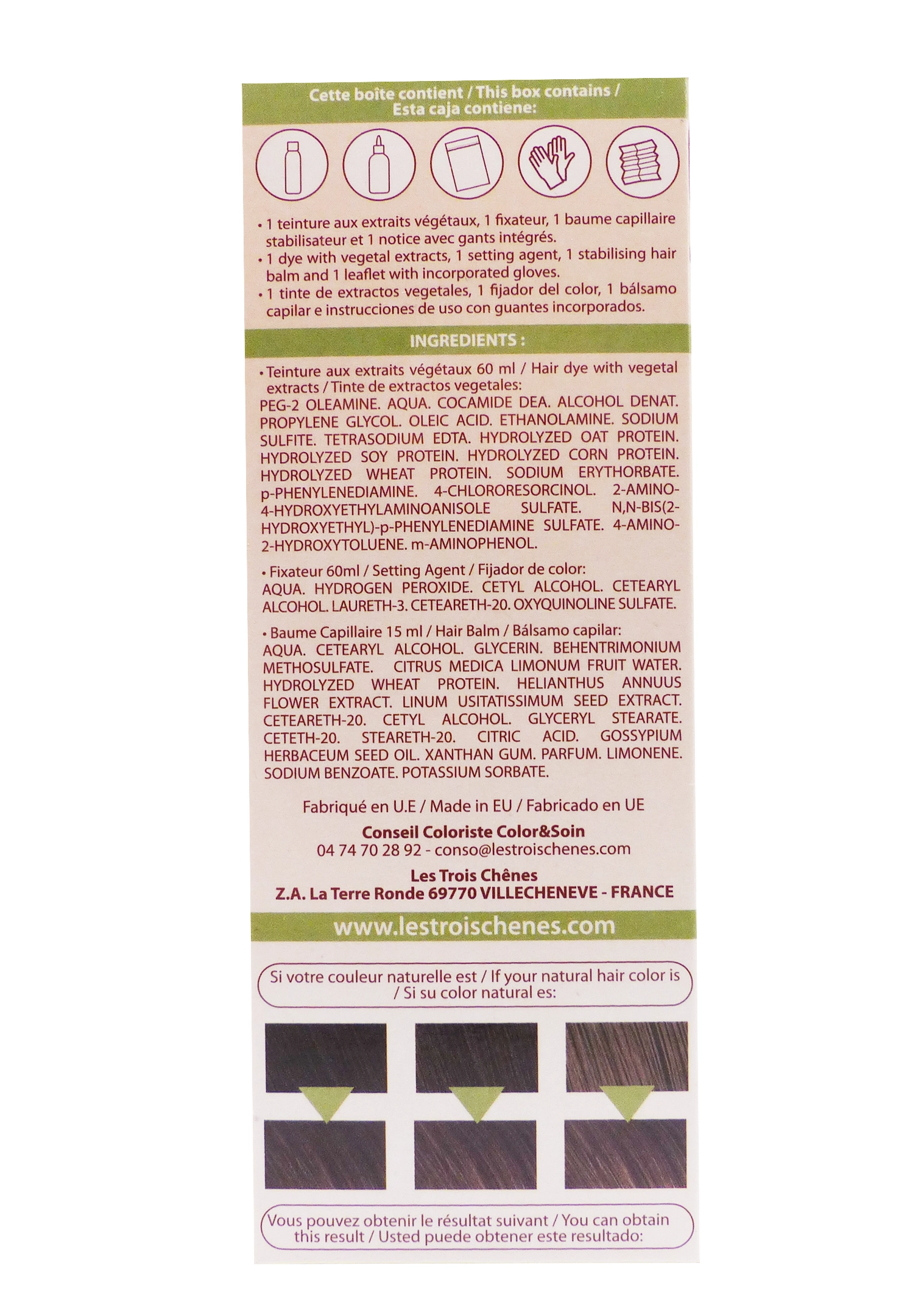 LES 3 CHÊNES COLOR ET SOIN COLORATION PERMANENTE 3N CHATAIN FONCE