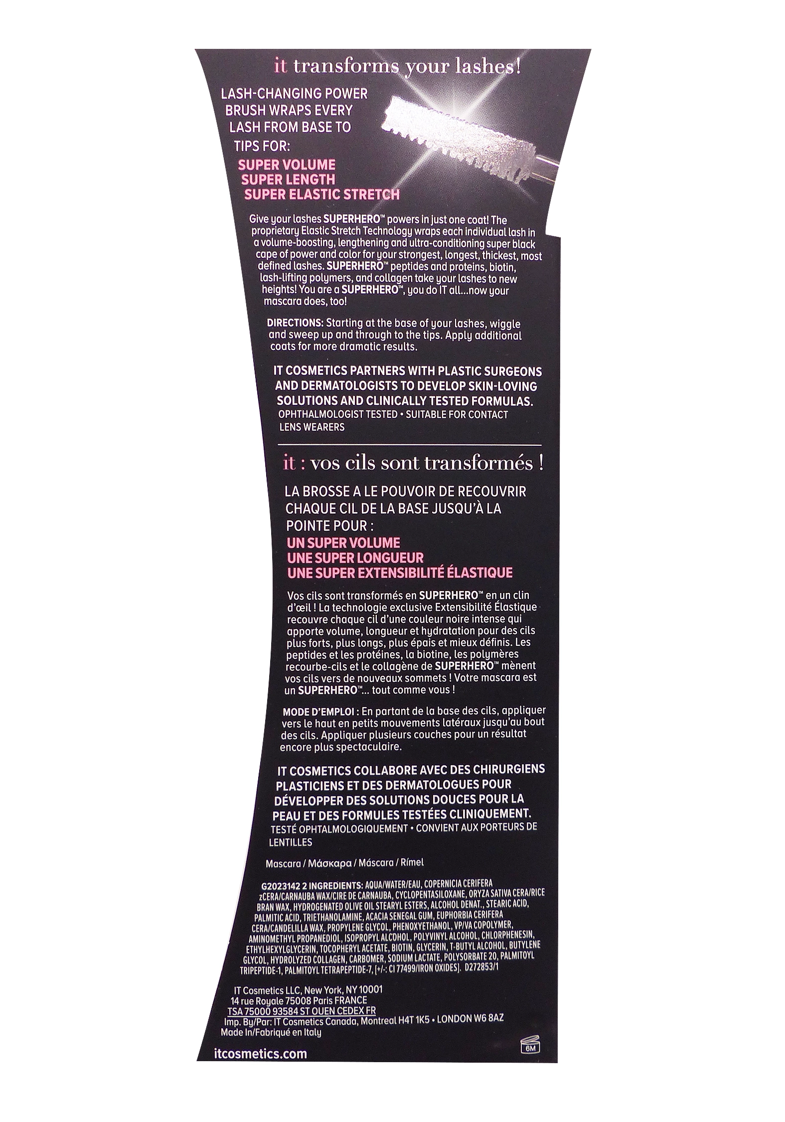 Mode d’utilisation du Mascara  IT Cosmetics Superhero Volumateur Noir