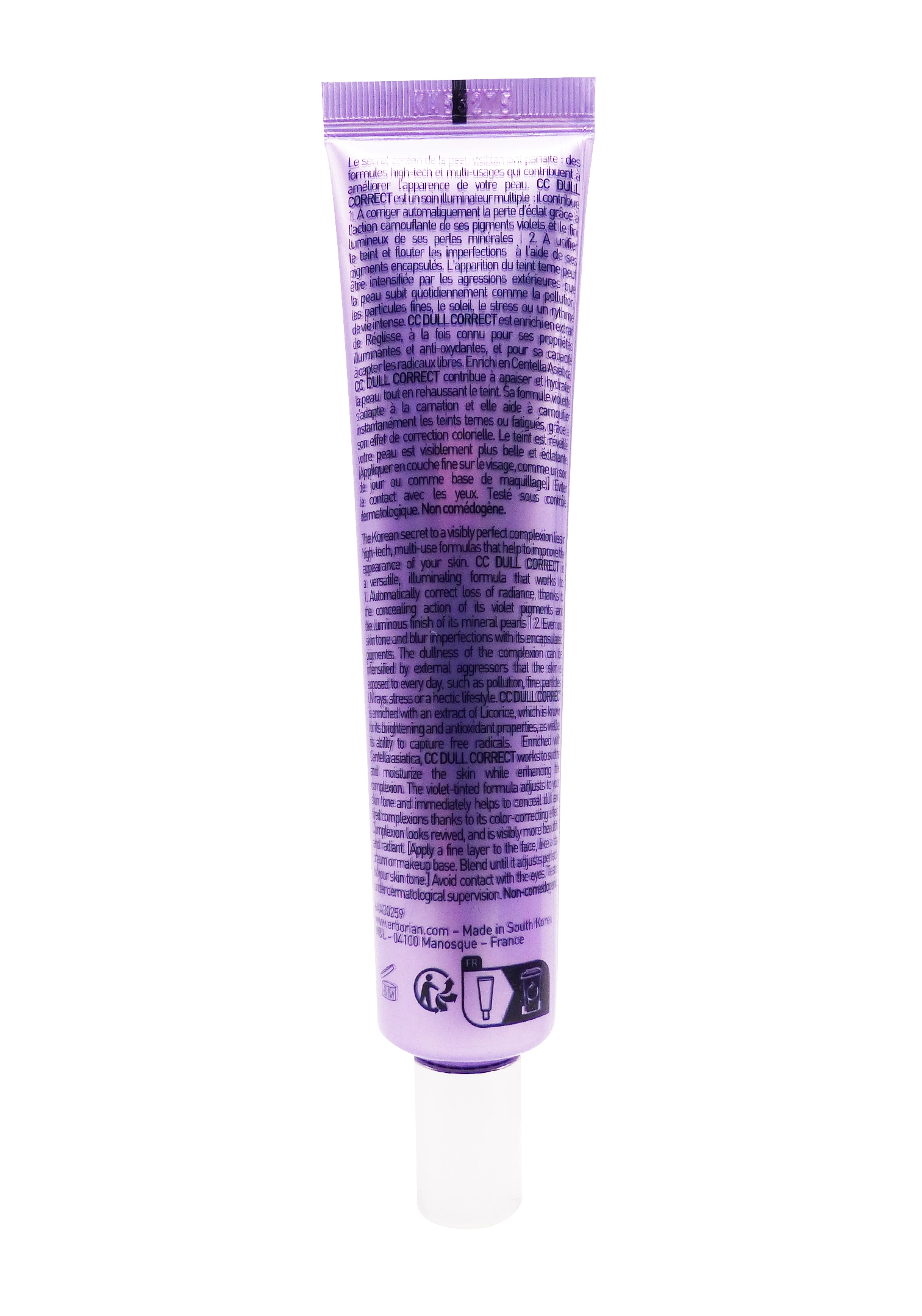 CC Dull Correct est formulée avec des micro–perles réflectrices de lumière qui capturent et diffusent la lumière, permettant de retrouver un éclat naturel immédiat et de sublimer le teint, même sur les peaux les plus ternes. La texture légère et non grasse pénètre rapidement pour laisser un fini mat et satiné, idéal pour tous les types de peau, même les plus sensibles.