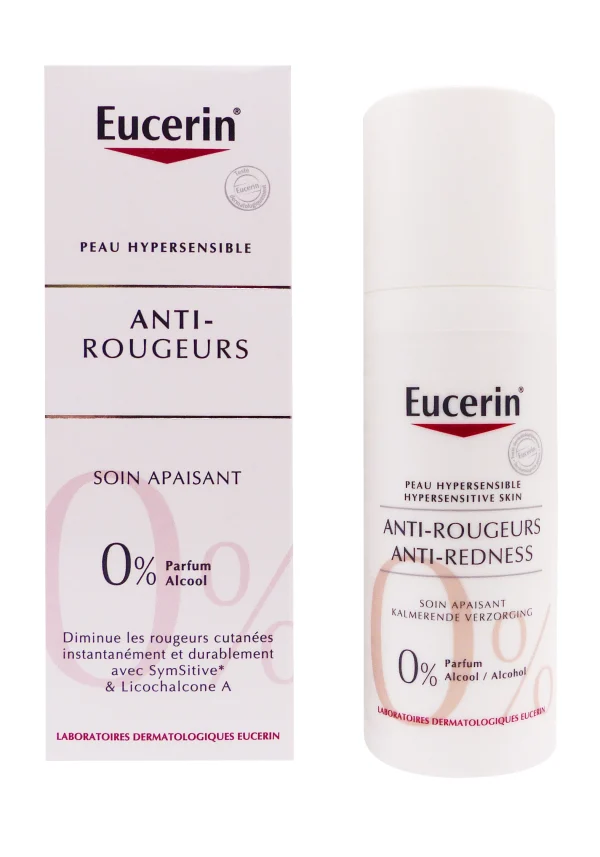 Eucerin Anti-Rougeurs Soin Apaisant 50 ml est conçu spécifiquement pour les peaux sensibles et hypersensibles sujettes aux rougeurs diffusées ou localisées. Ce soin développé par le laboratoire Eucerin allie apaisement immédiat, réduction visible des rougeurs et renforcement long terme de la barrière cutanée, répondant ainsi à la complexité des problèmes liés à la couperose et aux peaux réactives.
