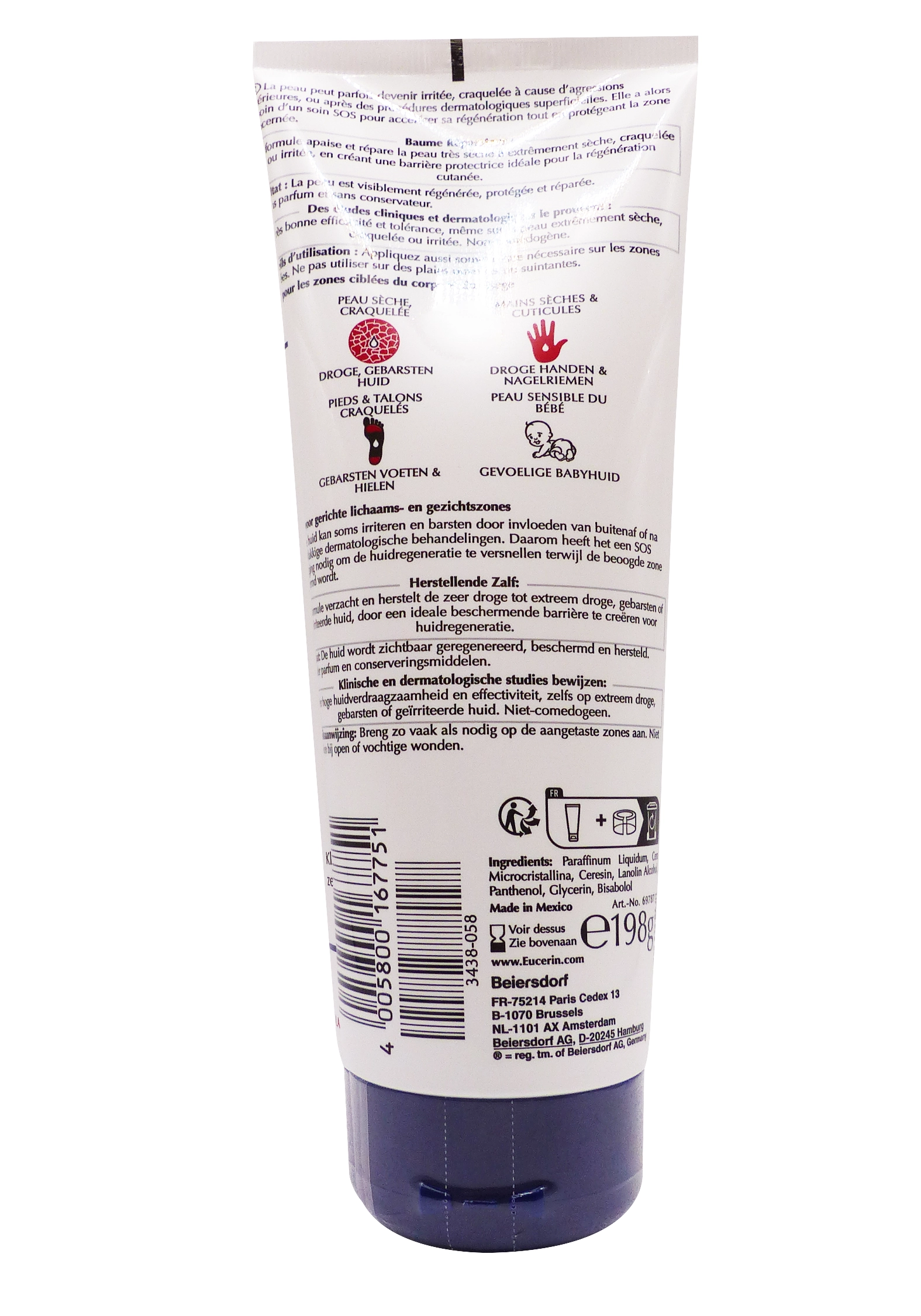 Eucerin Aquaphor Baume Réparateur 198 g est un soin dermatologique intensif conçu pour réparer, protéger et apaiser les peaux très sèches, craquelées, irritées et abîmées. Sa formule unique sans eau crée une barrière protectrice semi-occlusive qui favorise le transfert naturel de vapeur d’eau et d’oxygène, permettant à la peau de « respirer » tout en maintenant une hydratation optimale.