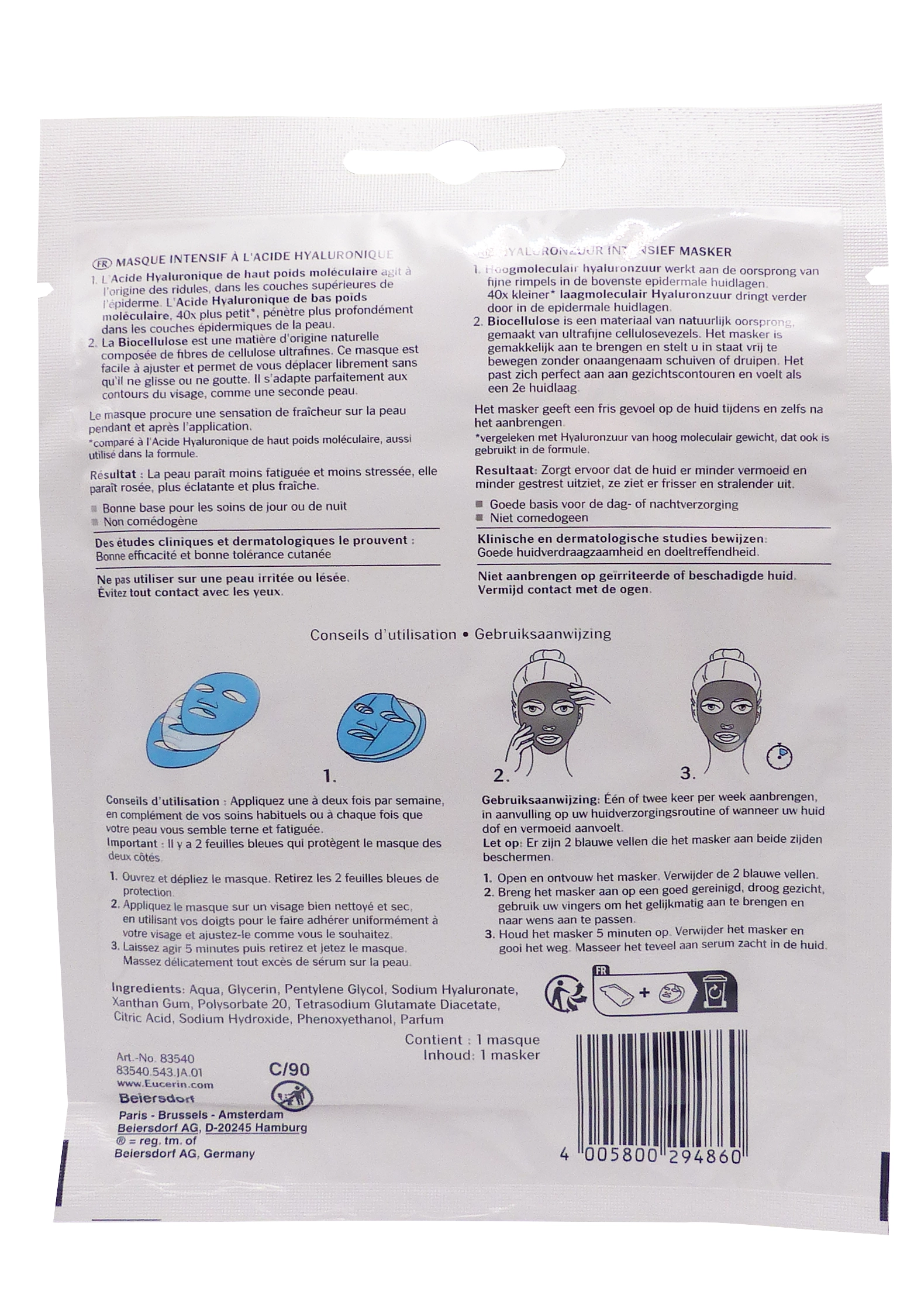 Composition d’Eucerin Hyaluron-Filler +3xEffect Masque Hydratation Intense