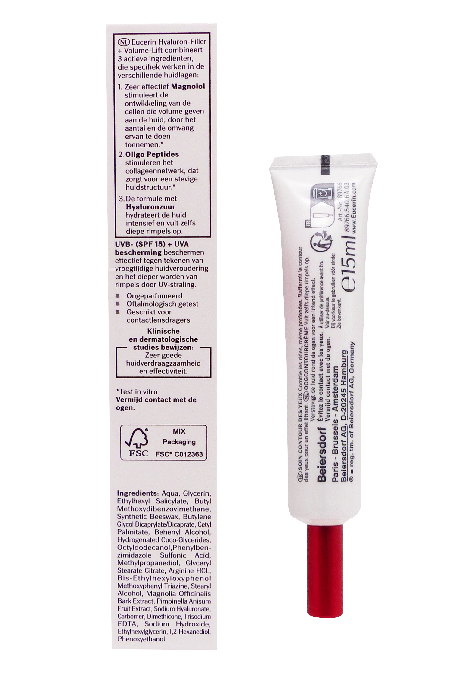 Eucerin Hyaluron-Filler + Volume-Lift SPF 15 Soin Contour des Yeux 15 ml est un soin ciblé du laboratoire Eucerin conçu pour traiter la zone délicate du contour des yeux, où les signes de l’âge se manifestent souvent en premier. Ce soin expert offre trois actions complémentaires : il comble les rides, redonne du volume et de la fermeté, tout en protégeant des rayons solaires grâce à un SPF 15.