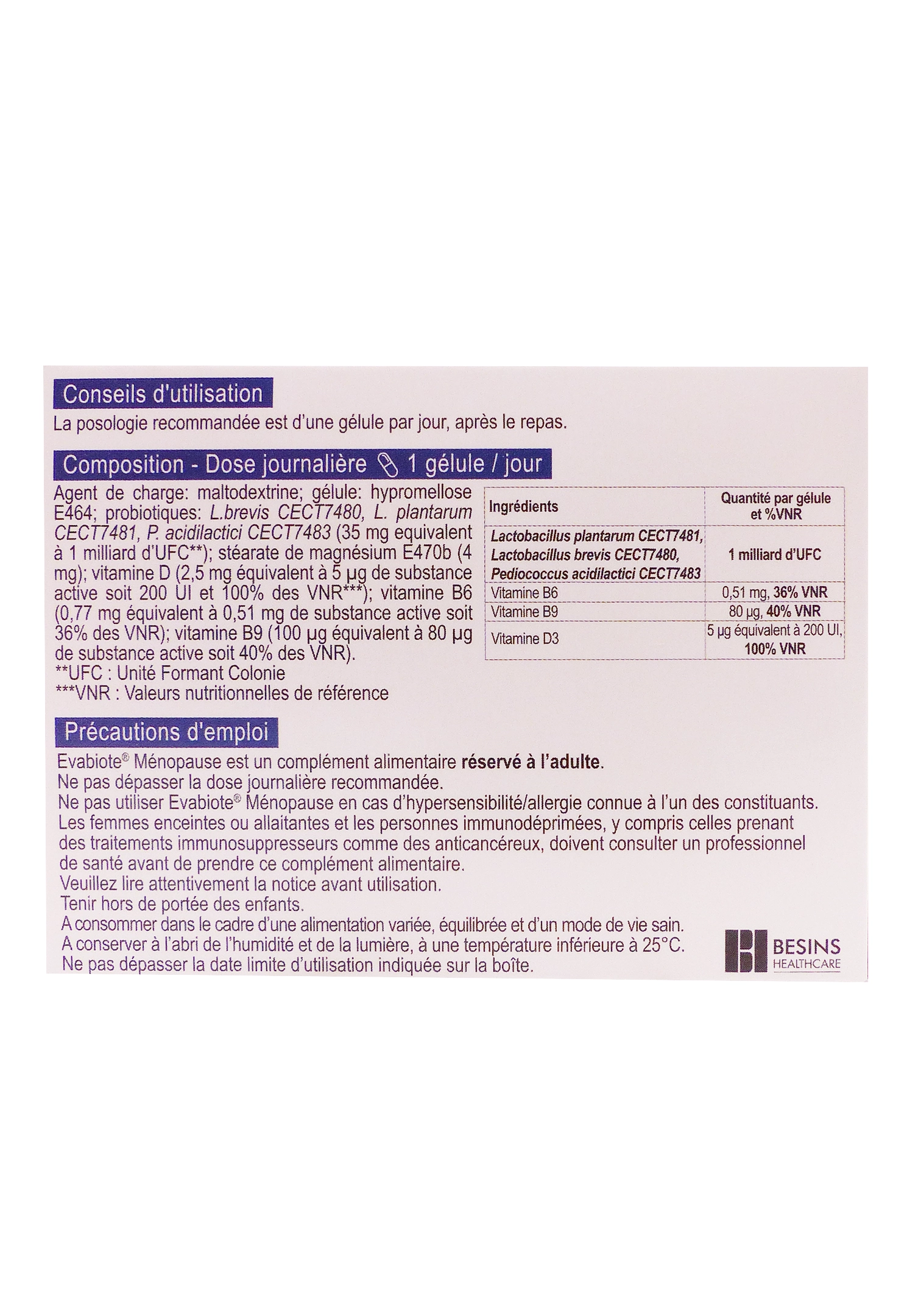 Mode d’utilisation d’Evabiote Ménopause :