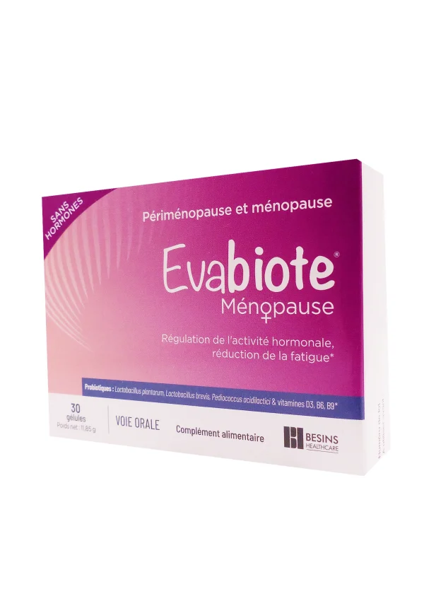 Evabiote Ménopause 30 gélules offre un soutien naturel et ciblé sans hormones pour mieux vivre la ménopause, en réduisant fatigue et déséquilibres via probiotiques et vitamines essentielles. Simple et efficace pour une cure mensuelle, il favorise équilibrehormonal et bien-être quotidien.
