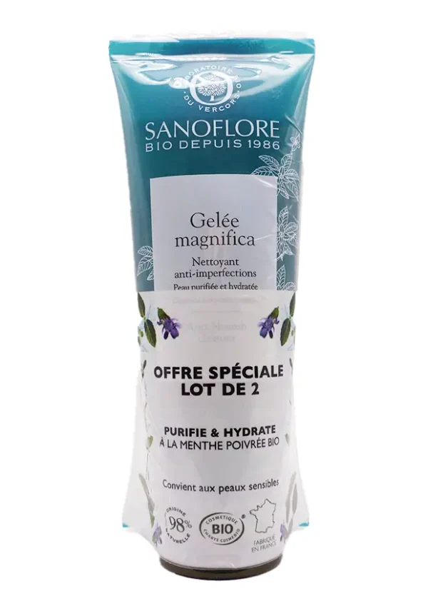 La Gelée Magnifica de Sanoflore est un nettoyant purifiant certifié bio, spécialement conçu pour les peaux à tendance acnéique. Ce lot économique de deux tubes de 120 ml offre une solution efficace et naturelle pour purifier la peau et lutter contre les imperfections.