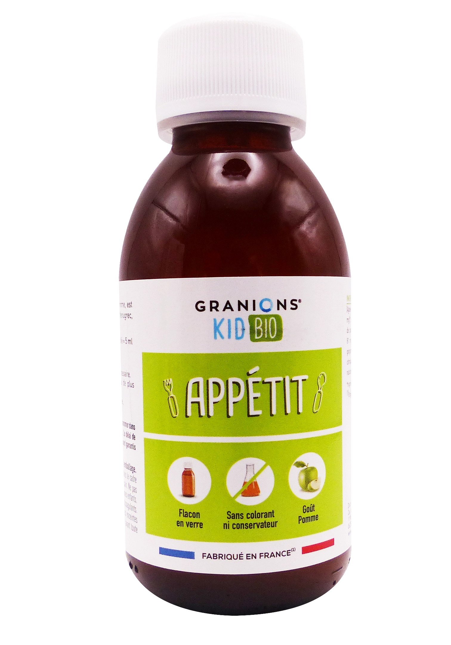 Granions Kid Bio Appétit solution buvable 125 ml peut être un soutien utile pour les enfants avec un appétit faible, un rythme de repas irrégulier ou des petites difficultés digestives, à condition de le placer dans un cadre global de rééducation alimentaire (repas à heure fixe, ambiance calme, aliments adaptés, variété des textures).