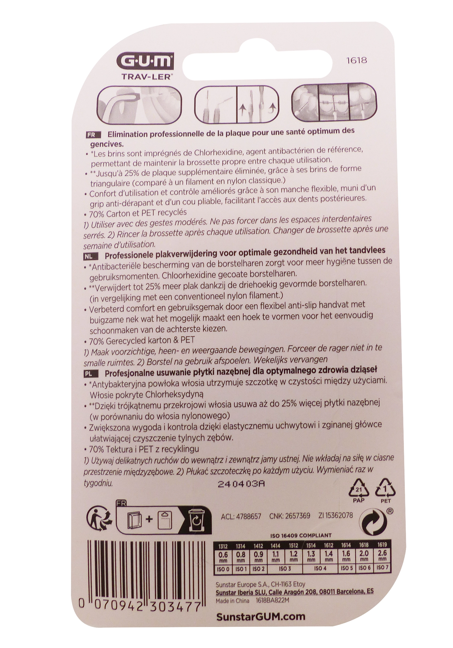 • Type : brossettes interdentaires réutilisables, blister de 4 unités (modèle 1618).