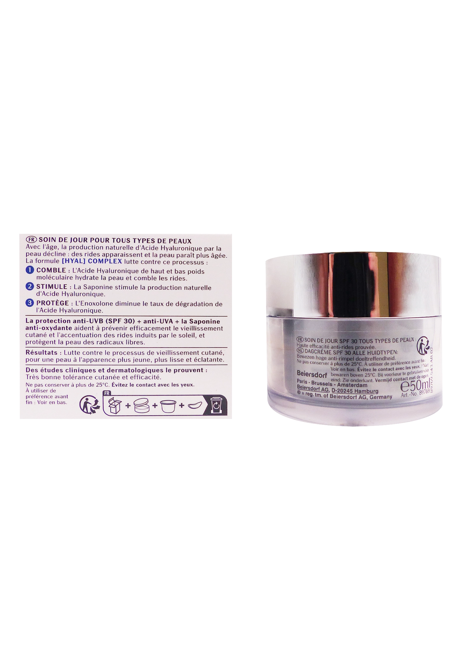 Eucerin Hyaluron-Filler + 3x Effect Soin de Jour SPF30 50ml est la référence en matière de soin anti-âge haute performance, formulé par le laboratoire dermatologique Eucerin, reconnu pour son expertise sur les peaux sensibles et matures. Ce soin de jour, à la fois hydratant intensif et correcteur de rides, associe une combinaison d’actifs exclusive qui cible les trois dimensions du vieillissement cutané pour une efficacité visible dès les premières applications : remplir, stimuler et protéger. Son ingrédient phare, l’acide hyaluronique de haut et bas poids moléculaire, contribue à repulper visiblement la peau dès la surface tout en agissant en profondeur sur les rides installées et les ridules persistantes. Cet actif est renforcé par la présence de saponine puissante, qui stimule la synthèse naturelle d’acide hyaluronique par les cellules cutanées, pour une action prolongée.