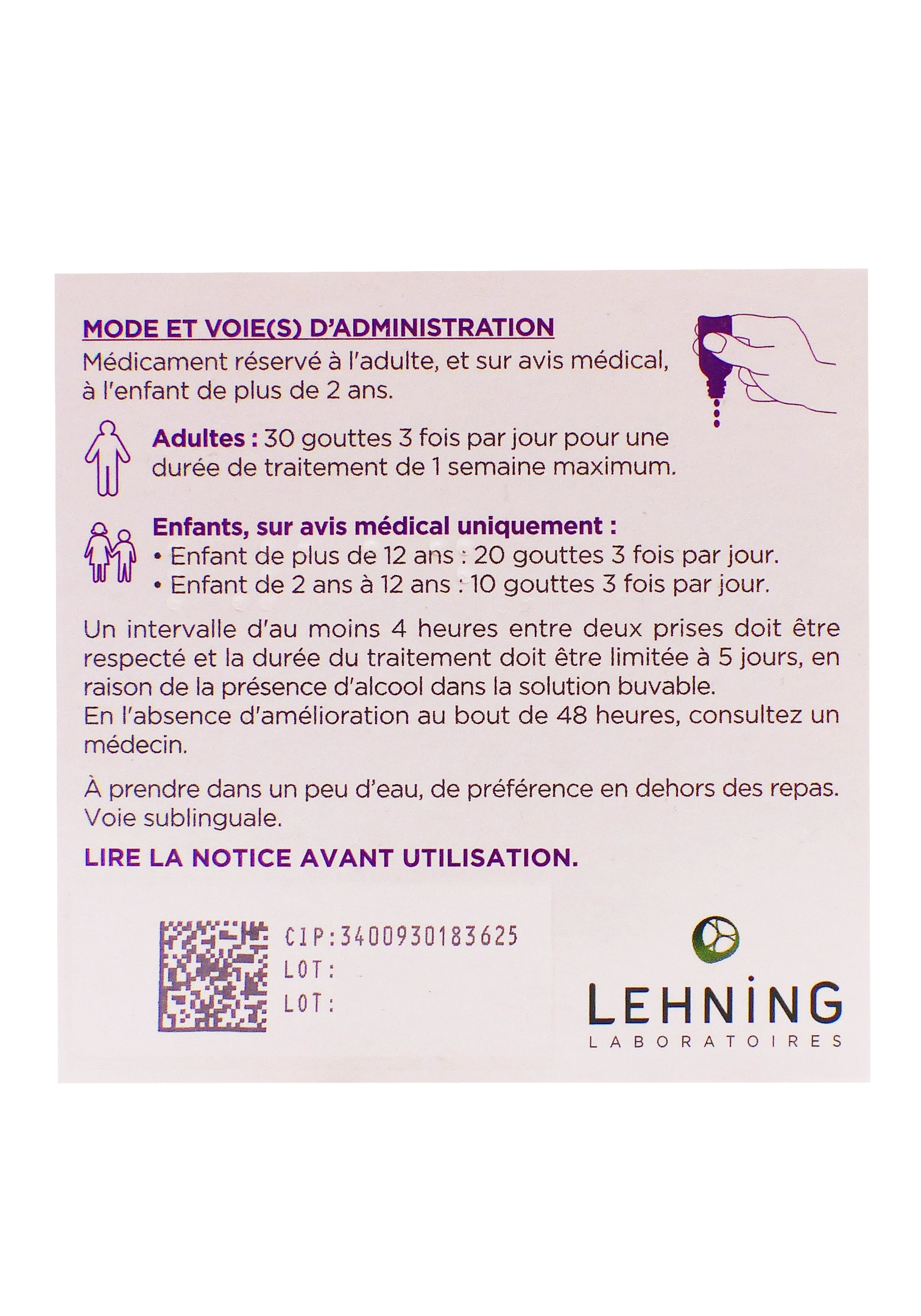 L114 Digestion est un médicament homéopathique Lehning sous forme de solution buvable en gouttes (flacon de 30 ml), traditionnellement utilisé pour faciliter la digestion en cas d’abus alimentaire comme les repas copieux. Il soulage les symptômes associés tels que ballonnements, flatulences, gastralgies (douleurs d’estomac) et céphalées (maux de tête). À base de 8 souches homéopathiques, il agit en voie sublinguale pour un effet rapide et naturel, réservé aux adultes et enfants de plus de 2 ans (sur avis médical pour ces derniers).