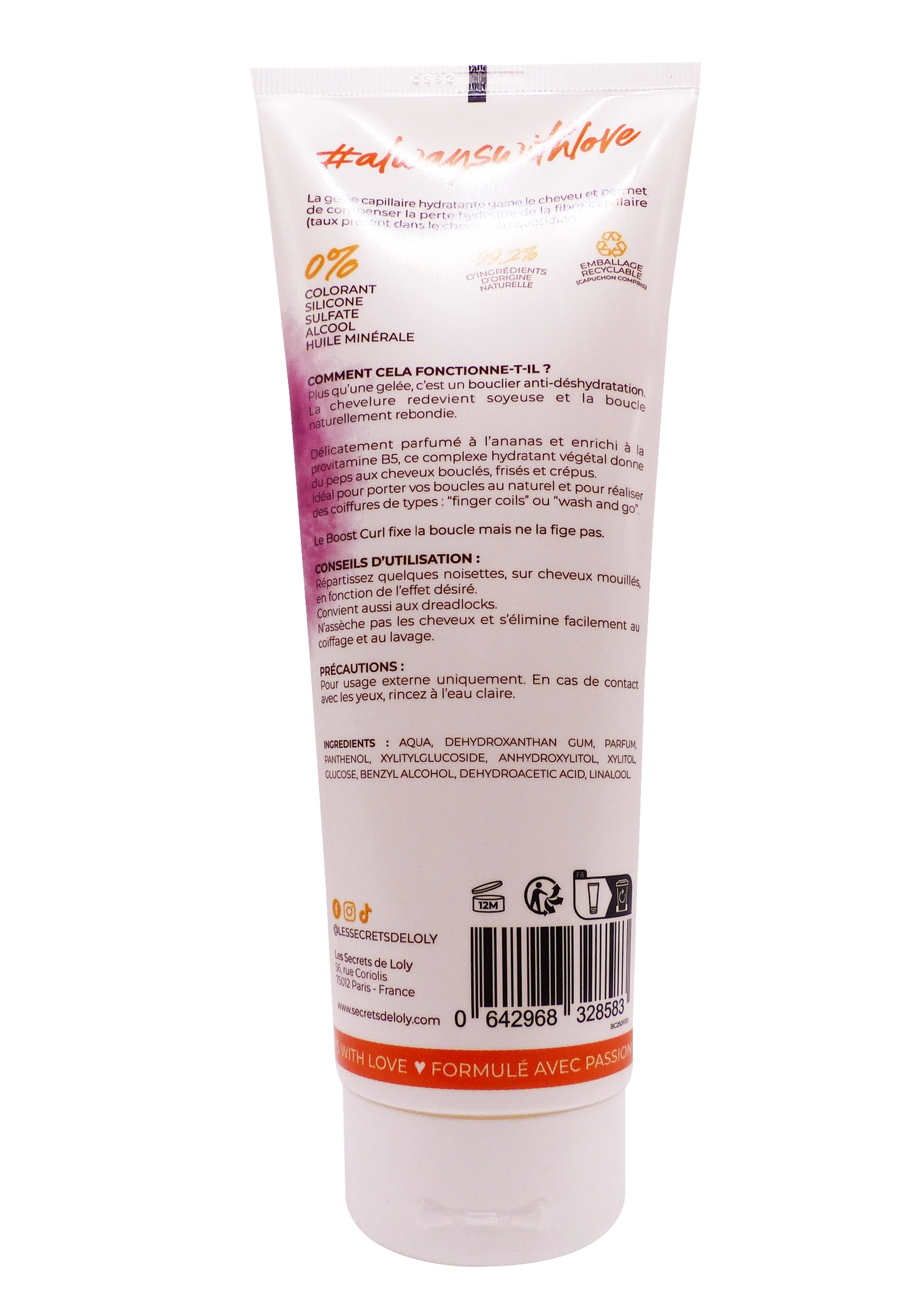 Les Secrets de Loly Boost Curl Gelée Capillaire 250 ml est un soin coiffant innovant, spécialement formulé pour sublimer les boucles naturelles grâce à une tenue légère et flexible. Conçue par la marque reconnue Les Secrets de Loly, cette gelée capillaire allie efficacité et respect de la fibre capillaire, nourrissant et définissant les boucles sans les alourdir ni les cartonner.