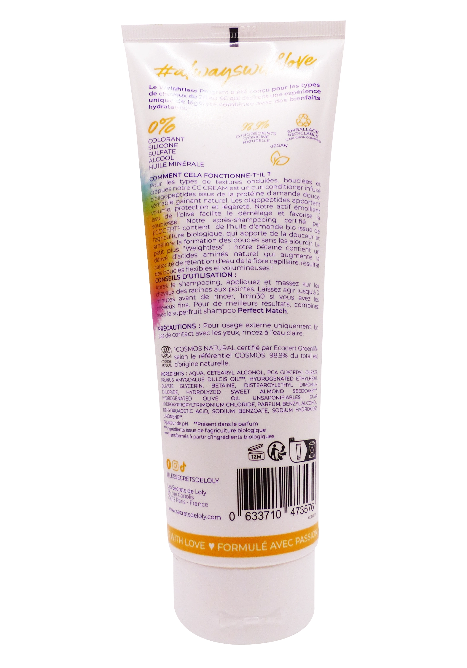 Le parfum subtilement gourmand, signature Les Secrets de Loly, enrichit l’expérience sensorielle, rendant chaque application agréable et relaxante. Sa faible affinité avec les agents irritants fait de cet après-shampooing un allié des cuirs chevelus sensibles, adaptés même aux peaux réactives.
