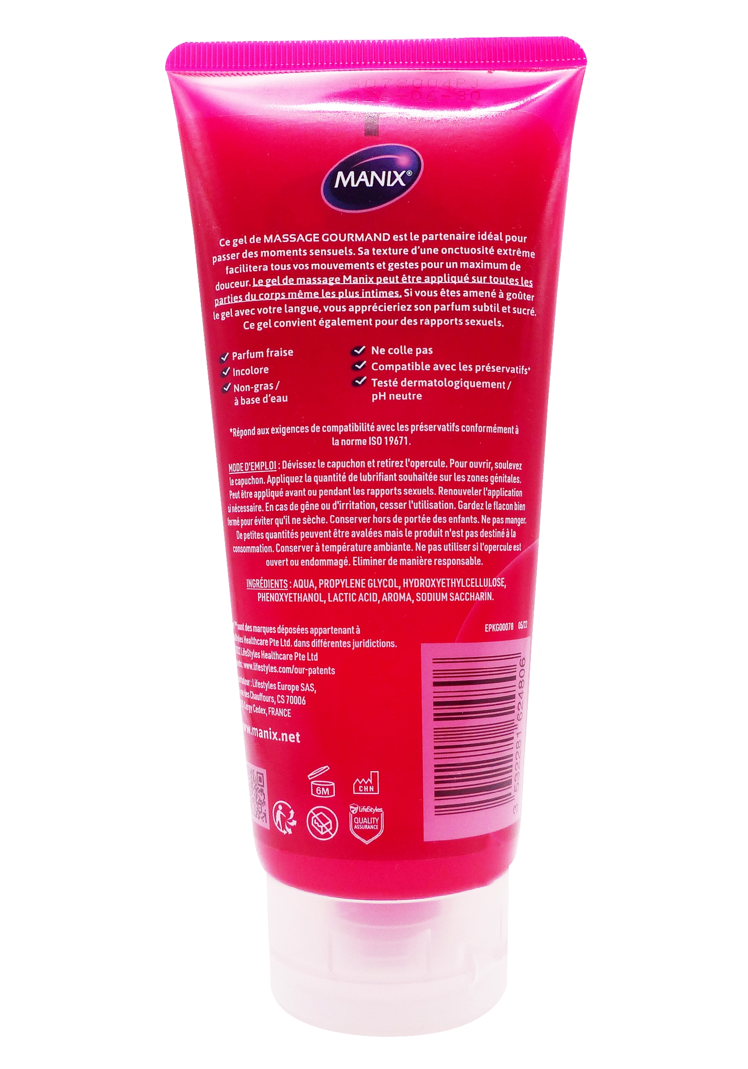 Composition du gel Manix Massage Gourmand Fraise Onctueuse :