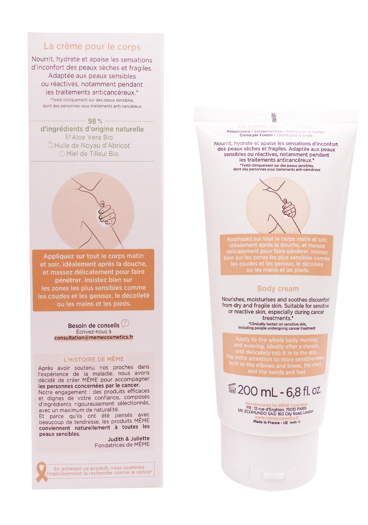 La formule de la crème pour le corps Même est pensée pour réparer la barrière cutanée, protéger la peau des agressions extérieures et prévenir l’apparition de tiraillements ou de rougeurs. Le laboratoire Même a sélectionné des ingrédients doux et respectueux de la peau, pour garantir une efficacité hydratante sans agressivité.