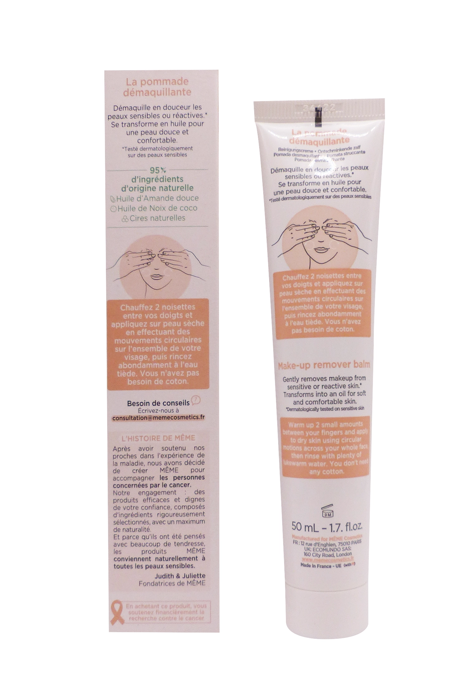 La pommade démaquillante Même 50 ml est conçue pour répondre aux besoins de démaquillage doux et efficace des peaux sensibles, réactives ou fatiguées. Ce soin démaquillant Même s’impose comme une solution idéale pour celles et ceux qui souffrent d’irritations, de tiraillements ou de sensibilité cutanée. La formule de la pommade démaquillante Même est pensée pour éliminer maquillage et impuretés en douceur, tout en apportant hydratation et confort à la peau. Le laboratoire Même a sélectionné des ingrédients doux et respectueux de la peau, pour garantir une efficacité démaquillante sans agressivité.