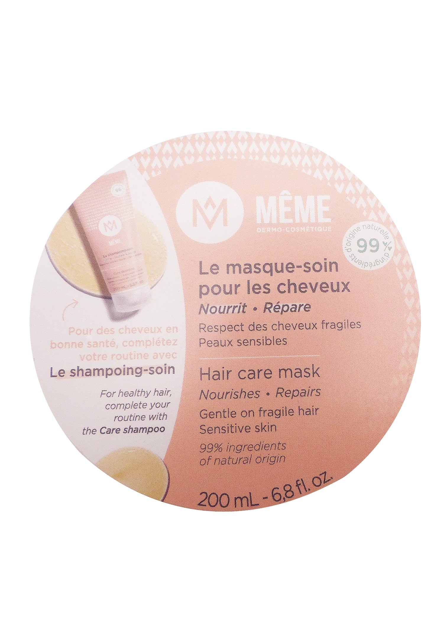 La texture du masque nourrissant Même est riche mais non grasse, ce qui permet une application facile et une pénétration optimale des principes actifs. Enrichi en huiles végétales, en protéines végétales et en agents hydratants, ce soin capillaire Même agit sur la fibre capillaire pour renforcer sa structure, limiter la casse et améliorer la brillance naturelle. Le masque-soin pour les cheveux Même 200 ml convient à tous les types de cheveux, mais il est particulièrement recommandé pour les cheveux abîmés, colorés, défrisés ou exposés à la chaleur. Il peut être utilisé en cure intensive ou en entretien régulier, selon l’état des cheveux et les besoins.