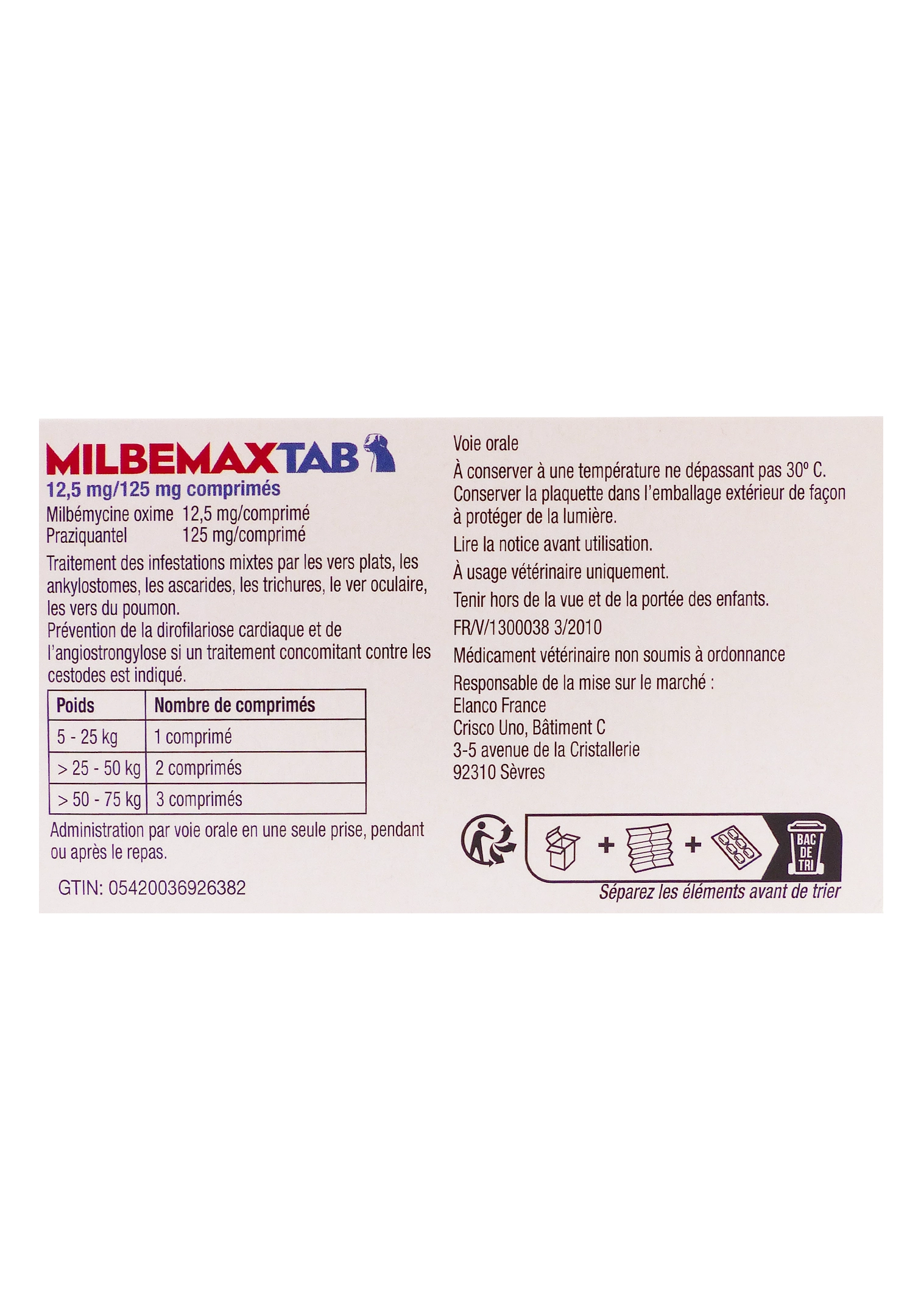 Grâce à une association de deux principes actifs puissants, la milbémycine oxime (16 mg par comprimé) et le praziquantel (40 mg par comprimé), Milbemaxtab agit en synergie pour éliminer rapidement et durablement les parasites intestinaux. La milbémycine oxime agit en perturbant la transmission nerveuse des nématodes, provoquant leur paralysie et leur élimination. Le praziquantel cible quant à lui la membrane cellulaire des cestodes, entraînant leur destruction rapide.