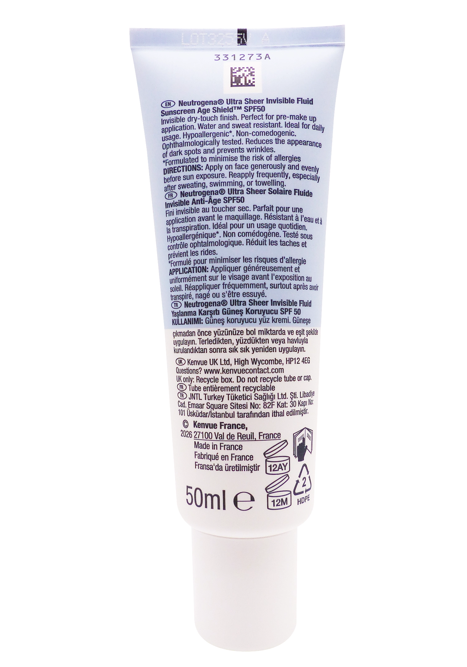 Le fluide invisible SPF 50, 50 ml anti-âge de Neutrogena est un soin solaire quotidien haute protection conçu pour prévenir les effets du vieillissement cutané liés au soleil. Grâce à sa texture ultra-légère et invisible, il protège efficacement la peau des rayons UVA et UVB tout en offrant un fini non gras et sans traces blanches. Adapté à tous les types de peau, même sensibles, il constitue une excellente base de maquillage tout en aidant à préserver la jeunesse de la peau.