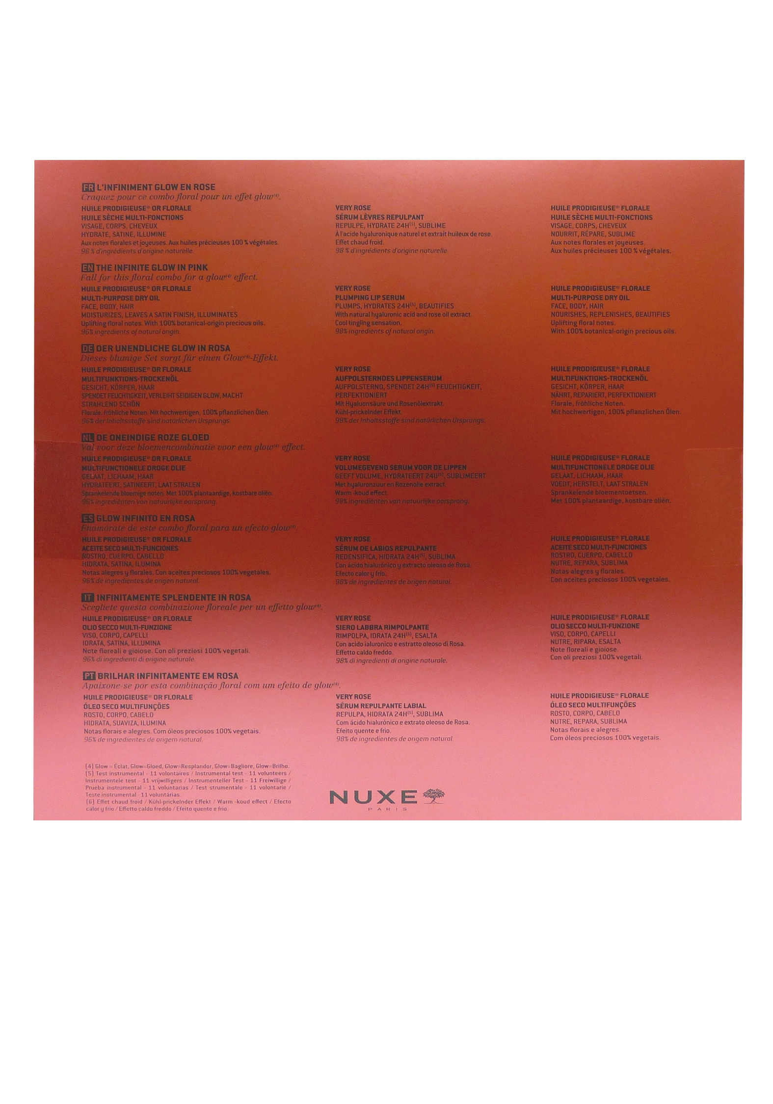 Le Coffret Nuxe L’Infiniment Glow en Rose est une parenthèse de lumière et de soin floral, conçue pour sublimer la peau et les lèvres avec une touche éclatante et naturelle. Ce coffret exclusif à l’occasion des fêtes de Noël 2025 réunit trois produits iconiques : l’huile prodigieuse or florale 50 ml, l’huile prodigieuse florale 10 ml, ainsi que le sérum lèvres repulpant Very Rose 8 ml. Ensemble, ils créent une routine complète pour illuminer, hydrater et repulper, tout en enveloppant la peau d’une fragrance florale délicate.