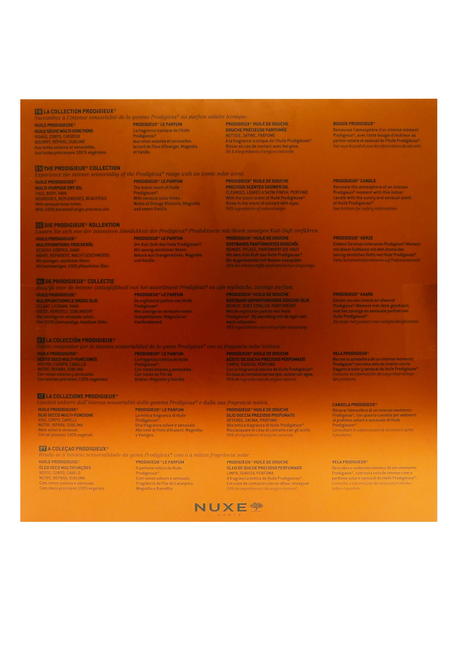 Enfin, la bougie parfumée Prodigieux 60 g prolonge l’expérience olfactive à la maison, diffusant la senteur emblématique de la gamme pour créer une atmosphère chaleureuse et apaisante.