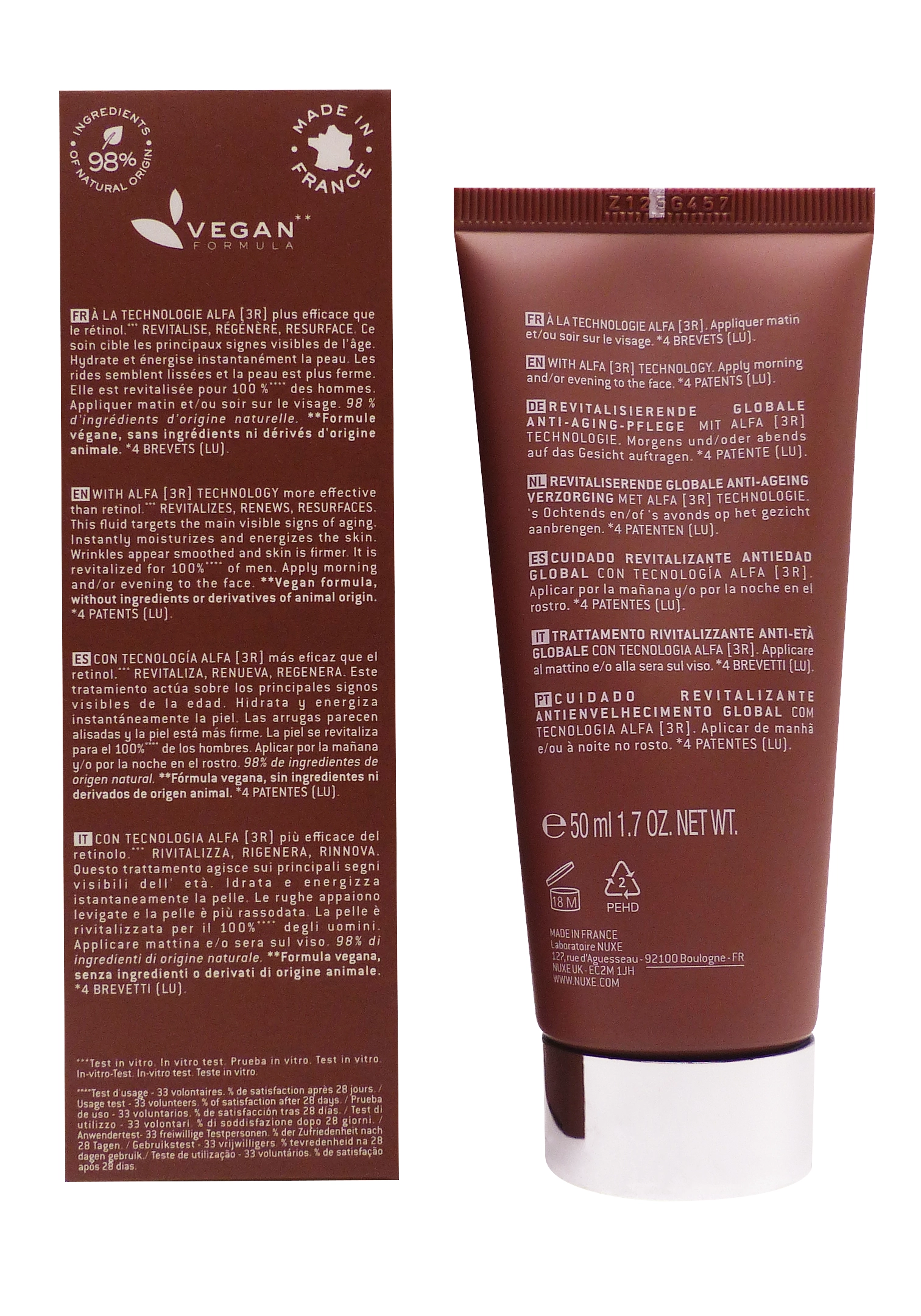 - Action anti-âge globale : raffermit, lisse rides et ridules, revitalise l’énergie cellulaire grâce à la technologie ALFA [3R] et oléo-extrait de frêne.
