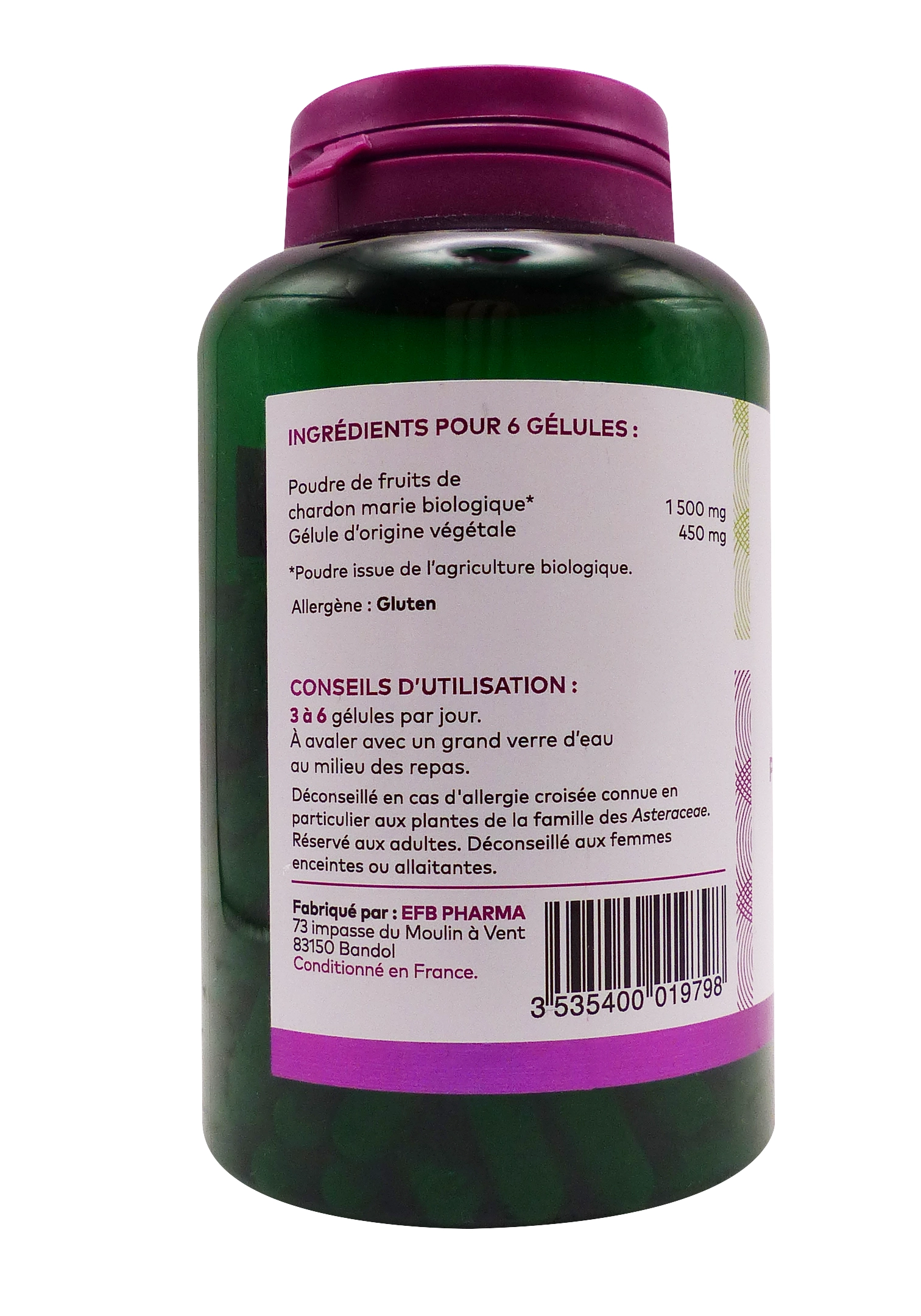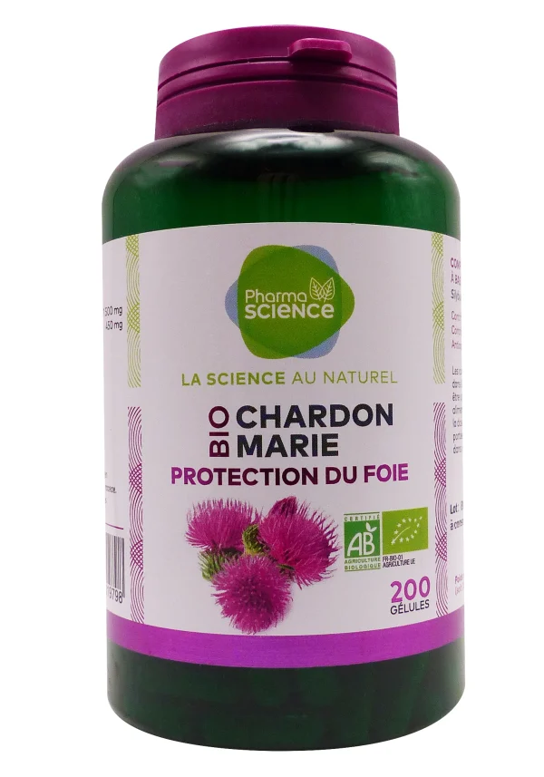 Pharmascience gélules Chardon Marie Bio 200 gélules sont un complément alimentaire 100% bio🌿à base de poudre de fruits de chardon marie biologique. Traditionnellement utilisé pour ses effets hépatoprotecteurs, il contribue au bon fonctionnement du foie, à sa protection contre les agressions et à la détoxification naturelle de l’organisme. Riche en silymarine, cette plante méditerranéenne est un allié précieux pour le foie sollicité.