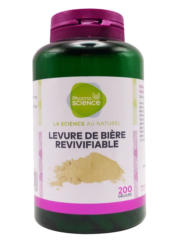 Pharmascience gélules Levure de Bière Revivifiable 200 gélules soutiennent l’équilibre de la flore intestinale, boostent les défenses naturelles et favorisent la beauté de la peau, des cheveux et des ongles grâce à la levure de bière vivante, riche en vitamines B, acides aminés et probiotiques naturels. Ce complément est idéal pour revitaliser l’organisme en période de fatigue, stress ou convalescence.