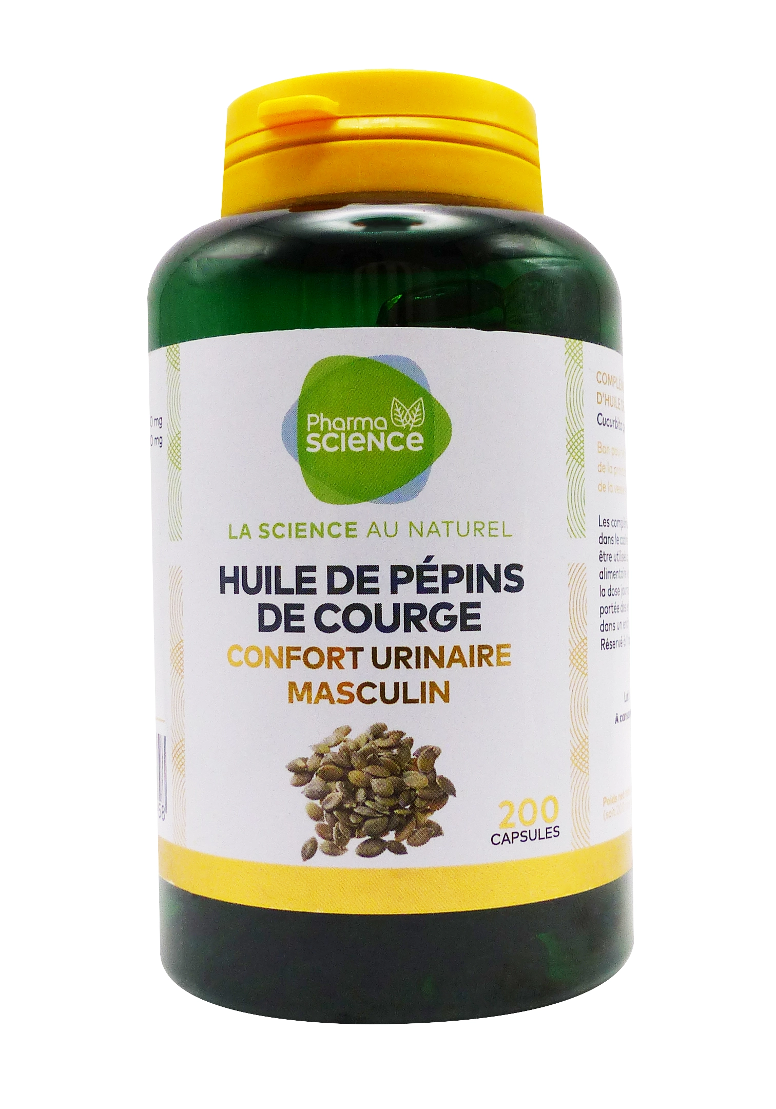 Pharmascience Huile de Pépins de Courge Confort Urinaire Masculin 200 capsules est un complément alimentaire naturel à base d’huile extraite à froid des graines de courge, formulé pour soutenir le confort urinaire chez l’homme et favoriser le bon fonctionnement de la prostate. Conditionné en flacon de 200 capsules, ce produit Pharmascience cible les troubles mictionnels liés à l’âge comme les envies fréquentes, le jet faible ou la vidange incomplète, grâce à ses phytostérols et acides gras essentiels. Idéal pour une cure préventive dès 40 ans, il agit sans hormones ni médicaments, en complément d’un suivi urologique.