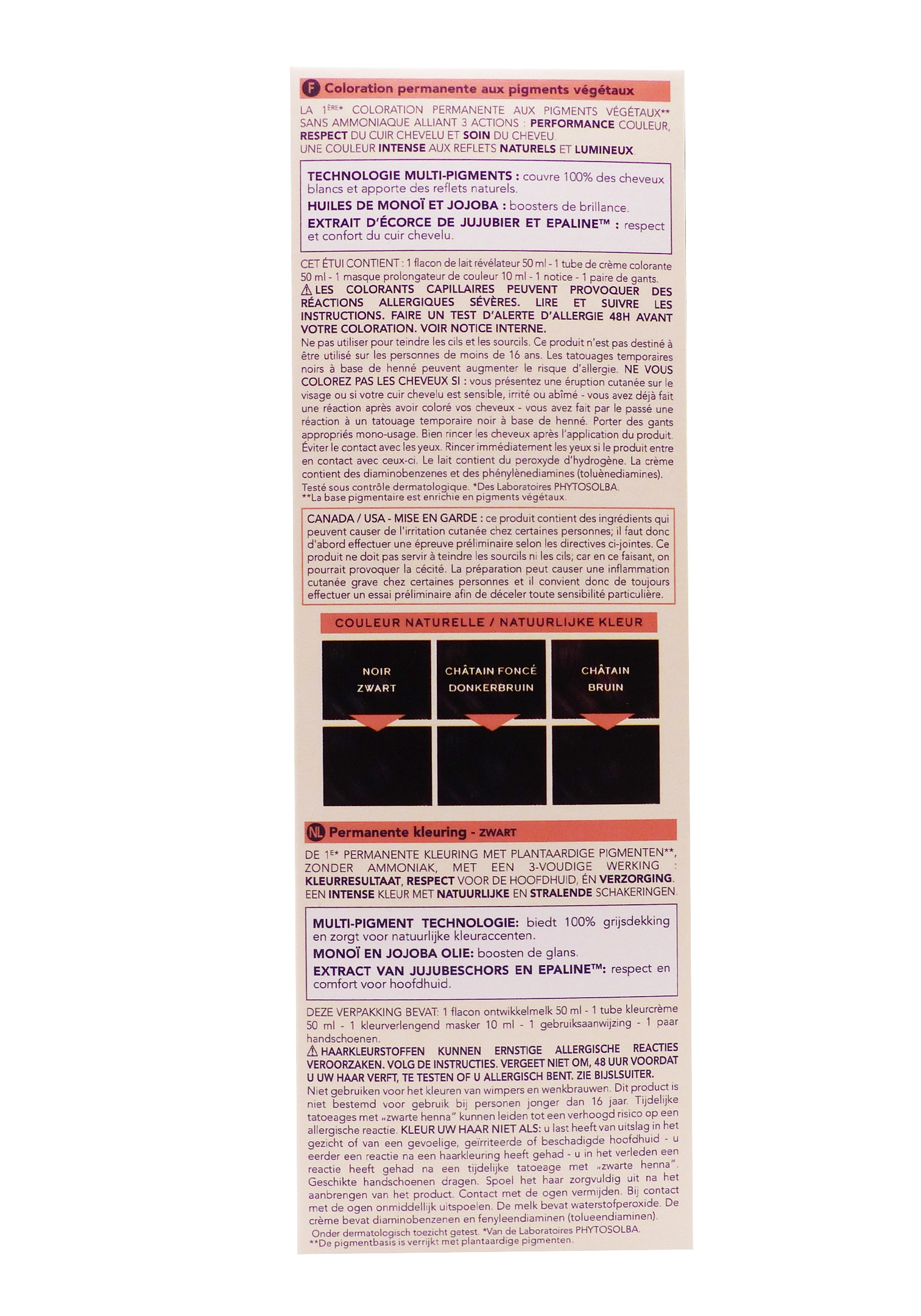 PHYTO COLORATION PERMANENTE 1 NOIR