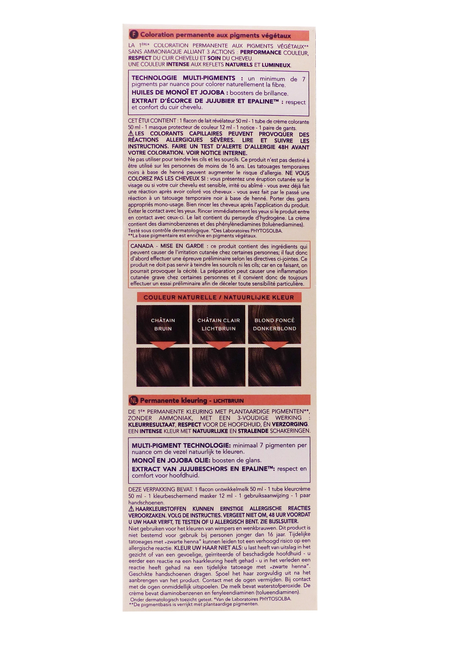 La composition de Phyto coloration 5 châtain clair repose sur :