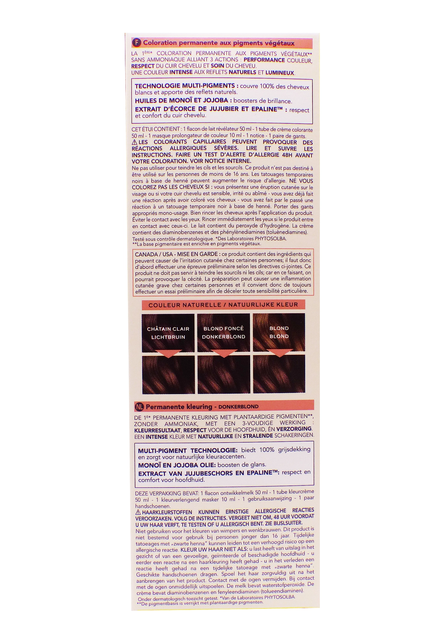Phyto Coloration Permanente 6 Blond Foncé est une coloration permanente spécialement formulée pour offrir une couleur intense, naturelle et profonde aux cheveux blonds foncés. Ce kit coloration Phyto 6 Blond Foncé associe une base pigmentaire végétale à une formule enrichie en huiles précieuses (Jojoba, Monoï) et en pigments végétaux issus de cinq plantes tinctoriales, garantissant une couverture optimale des cheveux blancs dès la première application. L’extrait d’écorce de Jujubier et l’Epalineprotègent le cuir chevelu et limitent les sensations d’inconfort, tandis que la formule sans ammoniaque et sans silicones assure une application douce et respectueuse, même pour les cuirs chevelus sensibles.