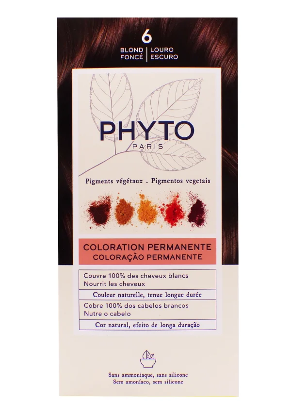 Phyto Coloration Permanente 6 Blond Foncé est une coloration permanente sans ammoniaque et sans silicones, enrichie en pigments végétaux et huiles précieuses, pour une couleur intense, naturelle et profonde, adaptée à tous les types de cheveux et aux cuirs chevelus sensibles.