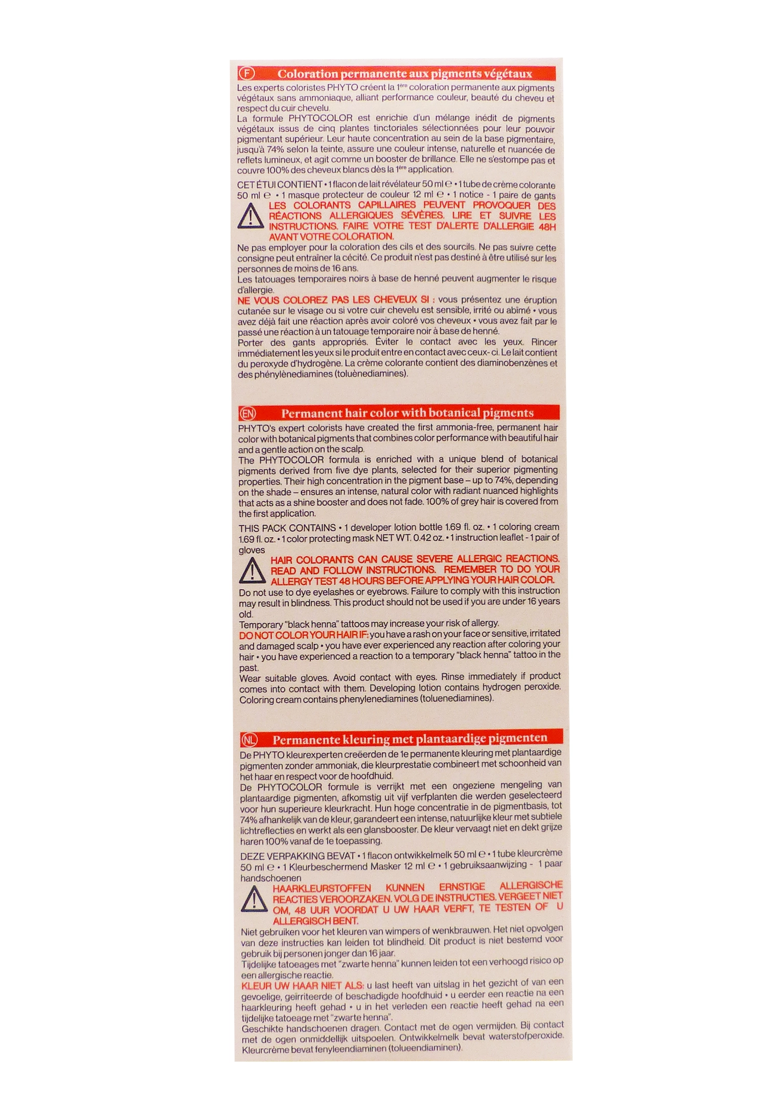 Ce kit coloration permanente Phyto est sans ammoniaque et sans silicones, ce qui en fait une solution douce et respectueuse, même pour les cuirs chevelus sensibles. La base pigmentaire végétale assure un résultat couleur intense, naturel et nuancé de reflets lumineux, tout en préservant la souplesse et la douceur du cheveu. Le kit contient un lait révélateur, une crème colorante, un masque protecteur de couleur, une notice détaillée et une paire de gants, pour une application facile et sécurisée.