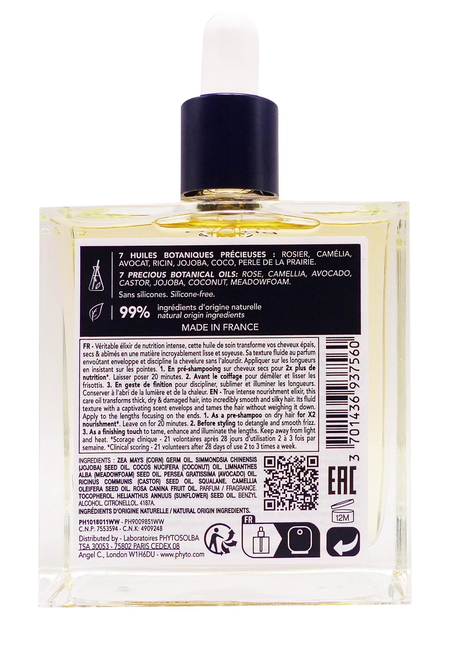 Le laboratoire Phyto, réputé pour ses formulations à base d’actifs végétaux, a développé ce soin en privilégiant des ingrédients naturels et efficaces. L’huile Phyto disciplinante contient un mélange d’huiles végétales (comme l’huile d’argan, l’huile de jojoba, l’huile d’olive ou d’autres huiles précieuses) qui agissent en synergie pour discipliner la fibre capillaire, réduire les frisottis et apporter de la brillance. Ces actifs végétaux sont reconnus pour leur pouvoir nourrissant, disciplinant et protecteur, et permettent de retrouver des cheveux plus sains, plus beaux et plus faciles à coiffer au fil des utilisations.