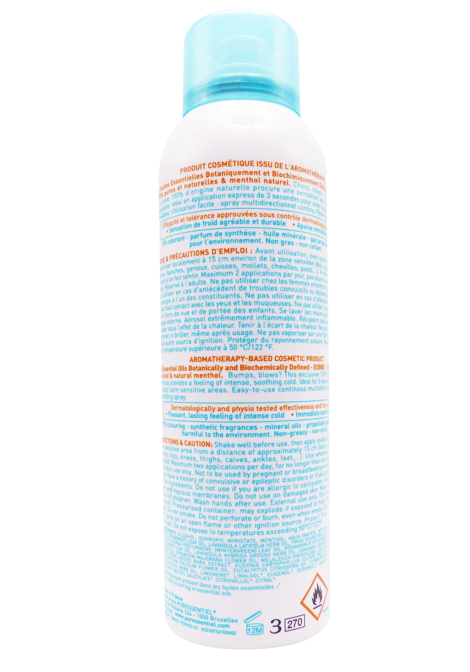 Avant utilisation, bien agiter le Spray Cryo Pure puis pulvériser localement à 15 cm environ de la zone sensible (dos, nuque, épaules, coudes, poignets, mains, hanches, genoux, cuisses, mollets, chevilles, pieds,…). À utiliser dès que le besoin s’en fait sentir. Maximum 2 applications par jour, pas plus d’une semaine par mois.