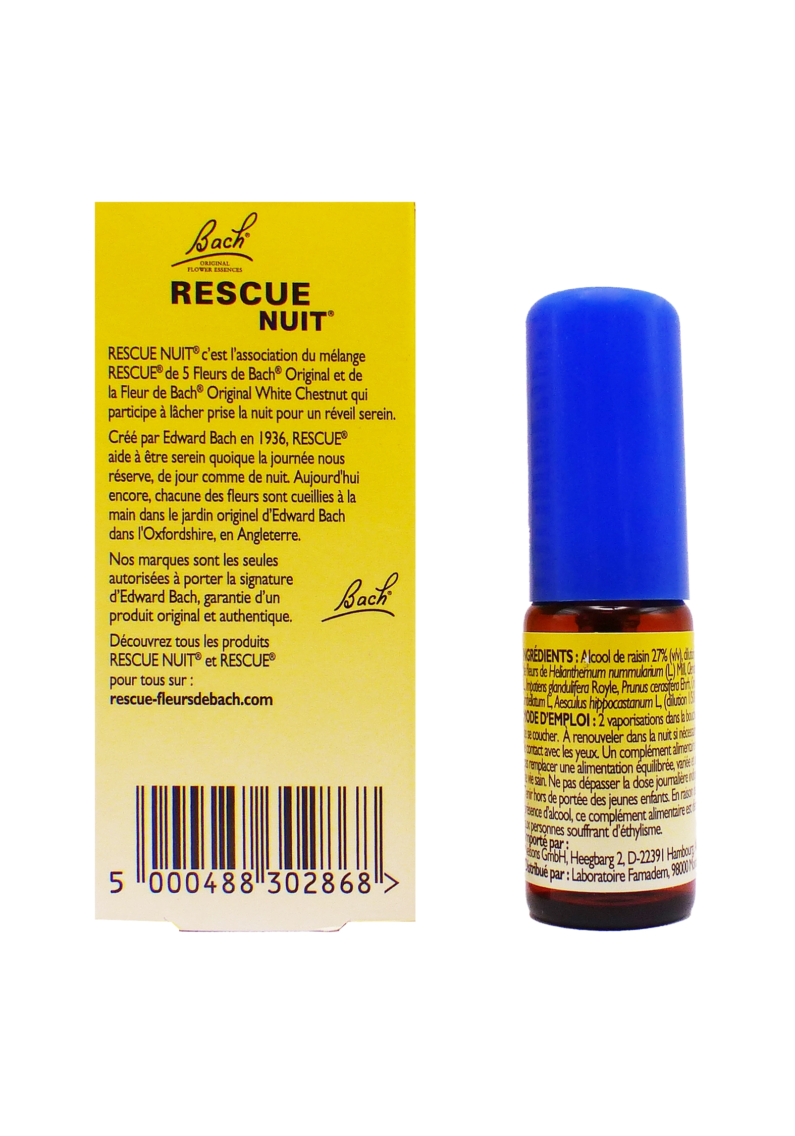 Avant le coucher ou lorsque des pensées perturbatrices apparaissent, vaporiser 2 pulvérisations de Rescue Nuits Harmonieuses Spray directement sous la langue. Répéter l’opération si nécessaire durant la nuit. Le produit agit rapidement grâce à sa diffusion buccale, favorisant un apaisement émotionnel immédiat.